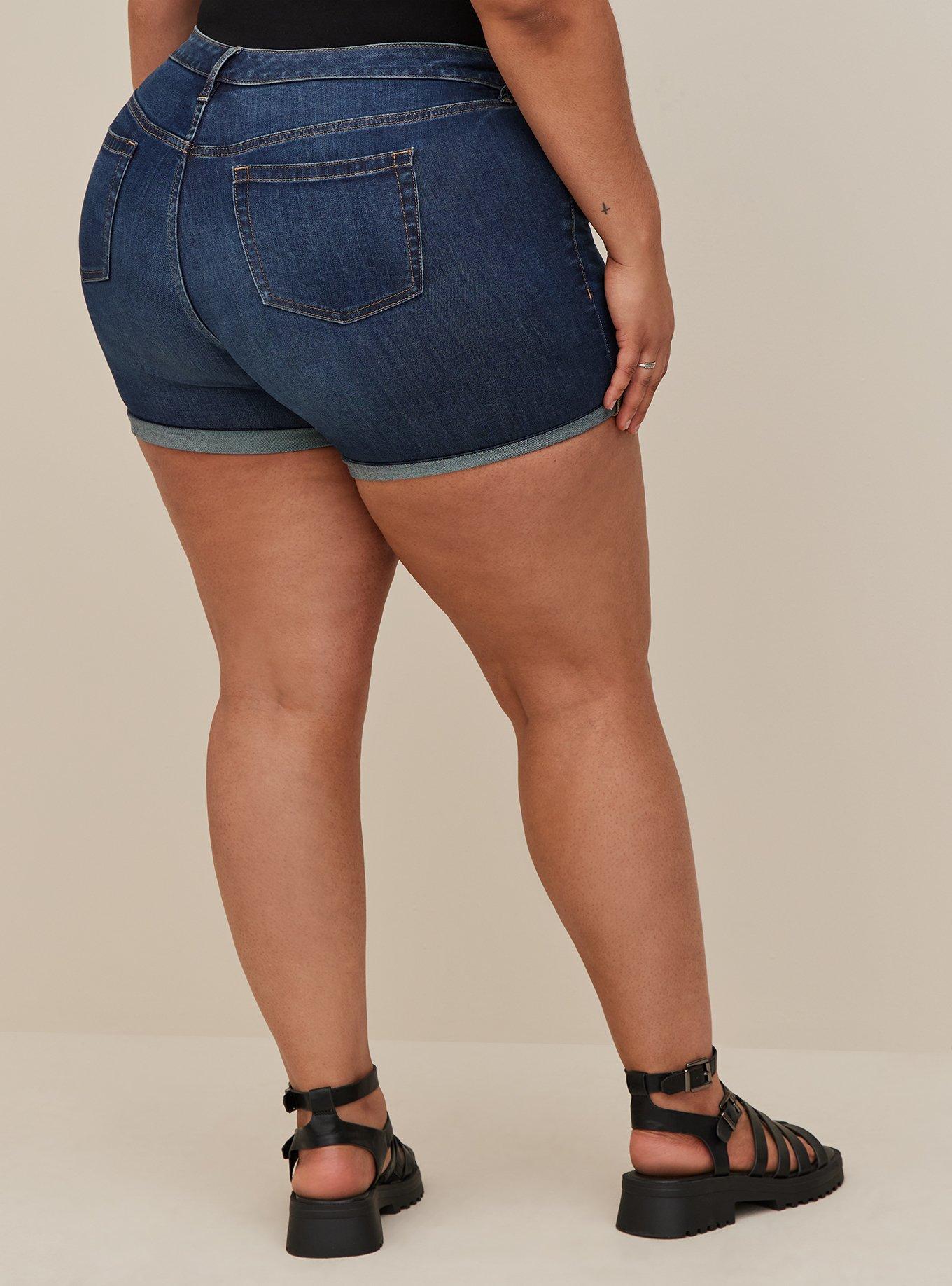 Love these shorts. Hard to find shorts that fit my curves (big thighs and butt) but these worked. It cuff unrolls if you want them longer.