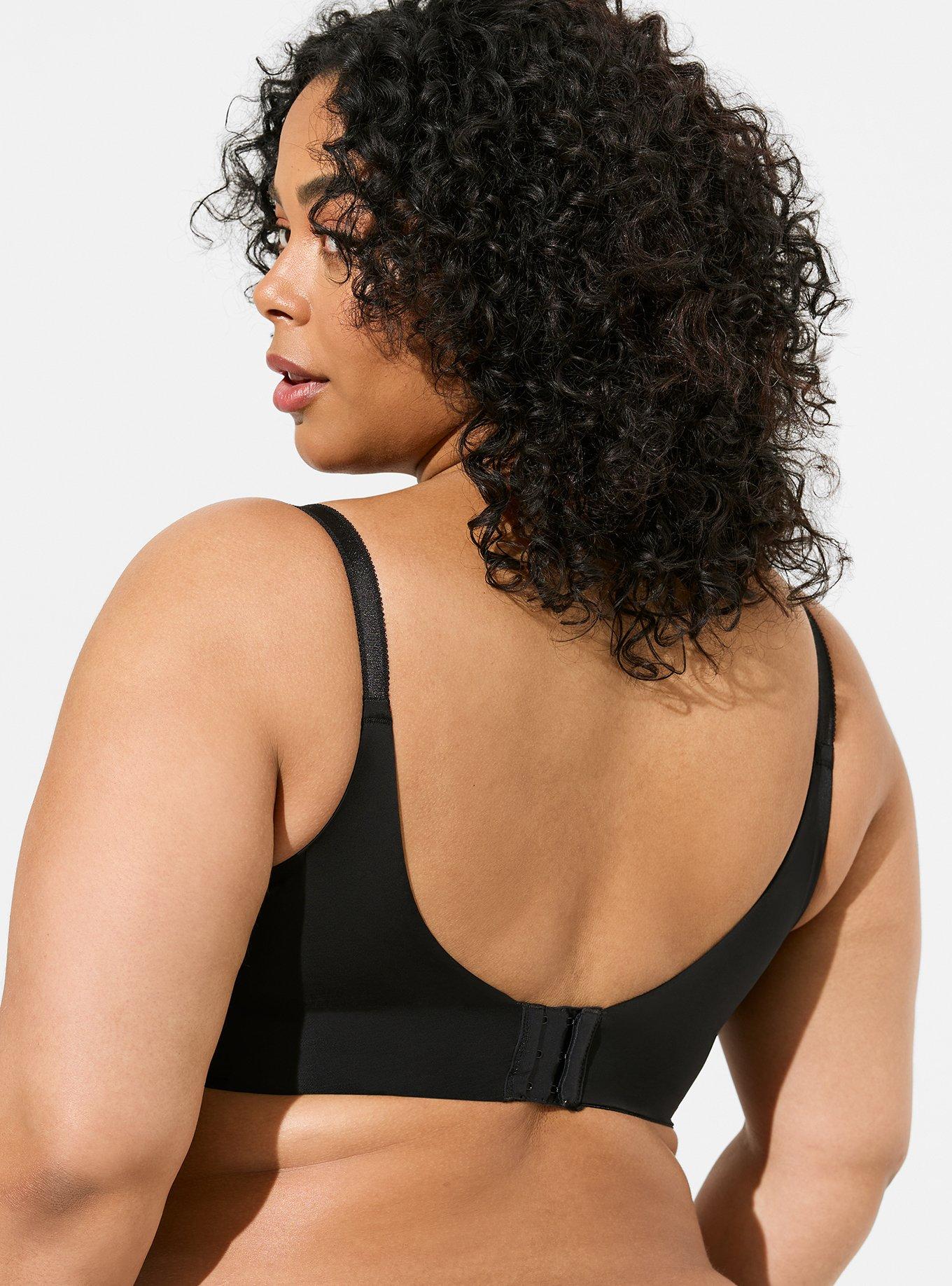 I have this bra in two colors. Smooth and supportive its great under basic tee shirts. I've bought Torrid bras in the past. They are expensive but they hold up so well they're totally worth it.