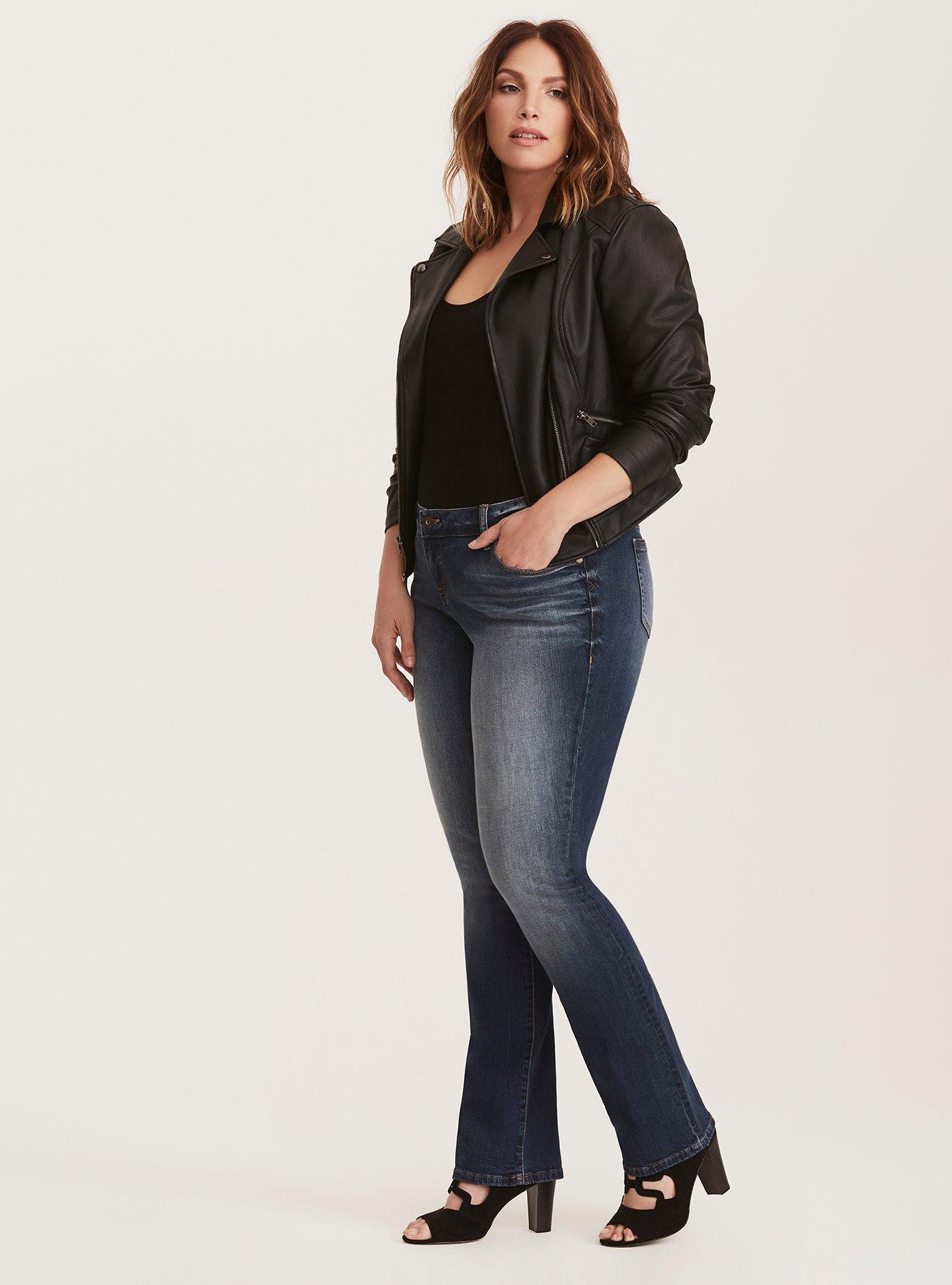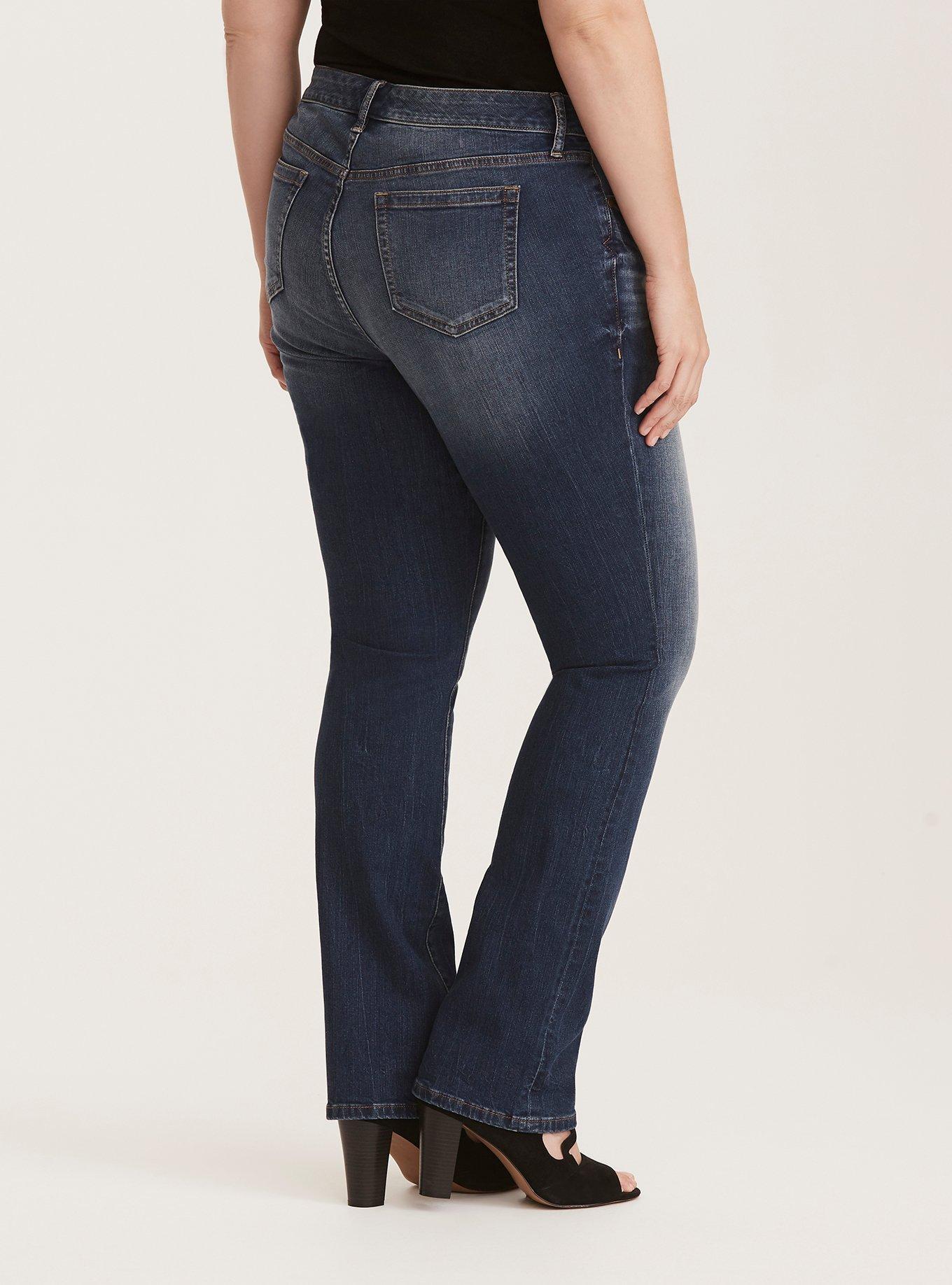 Rated 3 out of 5 by from Meh Man I really wanted to like these jeans. 1. I expected a very small boot cut, they are a normal boot cut, no smaller then an average bootcut. 2. The smell, lord the smell. I got a lighter wash in this jean and I've never had a jean stink like this in a light wash. Darker wash? Yes, but not light. I've tried everything. I can smell them as they are on my body. (Couldn't return due to washing them to try and get rid of smell but customer service was awesome about my problem and satisfied my issue) 3. They fit as a loose jean EVERYWHERE. The picture shows them fitting pretty snug through hips and thighs, and then having a barely boot cut. These jeans (I ordered down a size) are baggy all over. The actual waist is pretty comfortable, maybe I should've gone down 2 sizes, but the hips, thighs and knees are super loose and not flattering at all. I've relegated these as "house jeans" because I don't want to wear them in public. They are so ill fitting, I feel like I look "sloppy". I love Torrid, but I'd love them more if they would get more consistent in their pants sizing. I feel like every style or type of pant from Torrid has a different sizing scale. I have multiple pairs of pants from Torrid and they are all different sizes even though my body hasn't changed. Basically if you order these, order down in size, and if they don't fit like a glove out of the box, you're going to end up with saggy bum, hips and thighs.