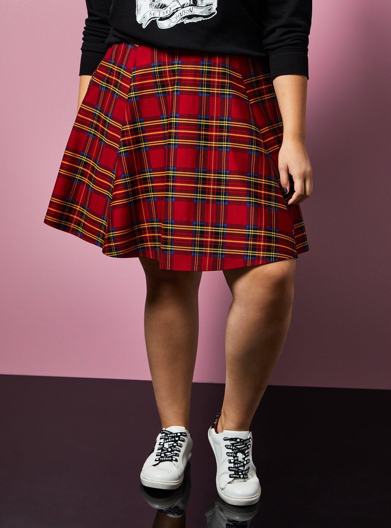 Rated 5 out of 5 by from Cool Skirt! I love this skater skirt from Betsey Johnson. It immediately reminded me of a plaid skirt that I wore a lot in the nineties. The skirt I had in the nineties was wool and this one is not so I can envision wearing this in all seasons. This skirt is a great red and the skater style skirt is very flattering. It was a little bit longer on me that expected. Since I'm 5'9" I expected the skirt to hit me above the knee but it hits a little bit past my knees. That's fine, though, so I can wear to work and not have to worry about constantly tugging it down. Quality is good.