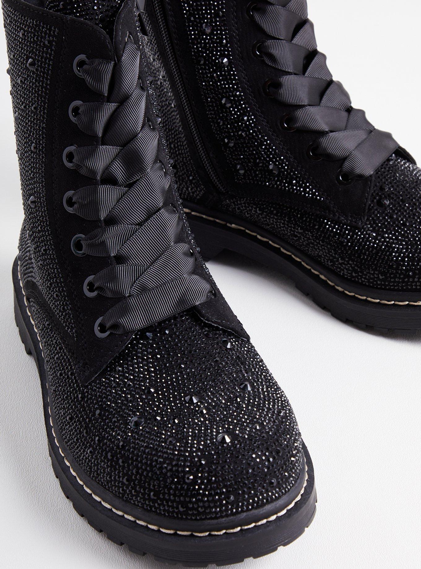 Betsey Johnson Rhinestone Combat Boot - Black (WW) is rated 4.1 out of 5 by 83.