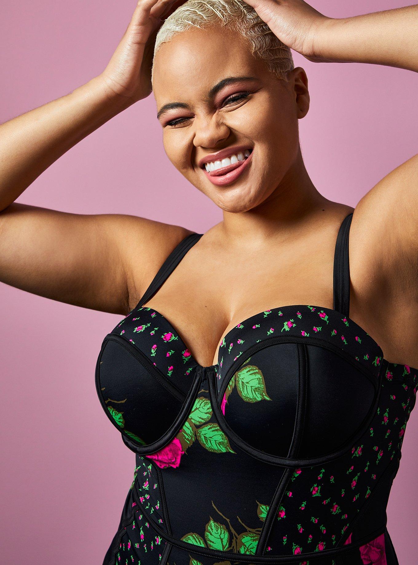 Betsey Johnson Rose Black Underwire One-Piece Swimsuit