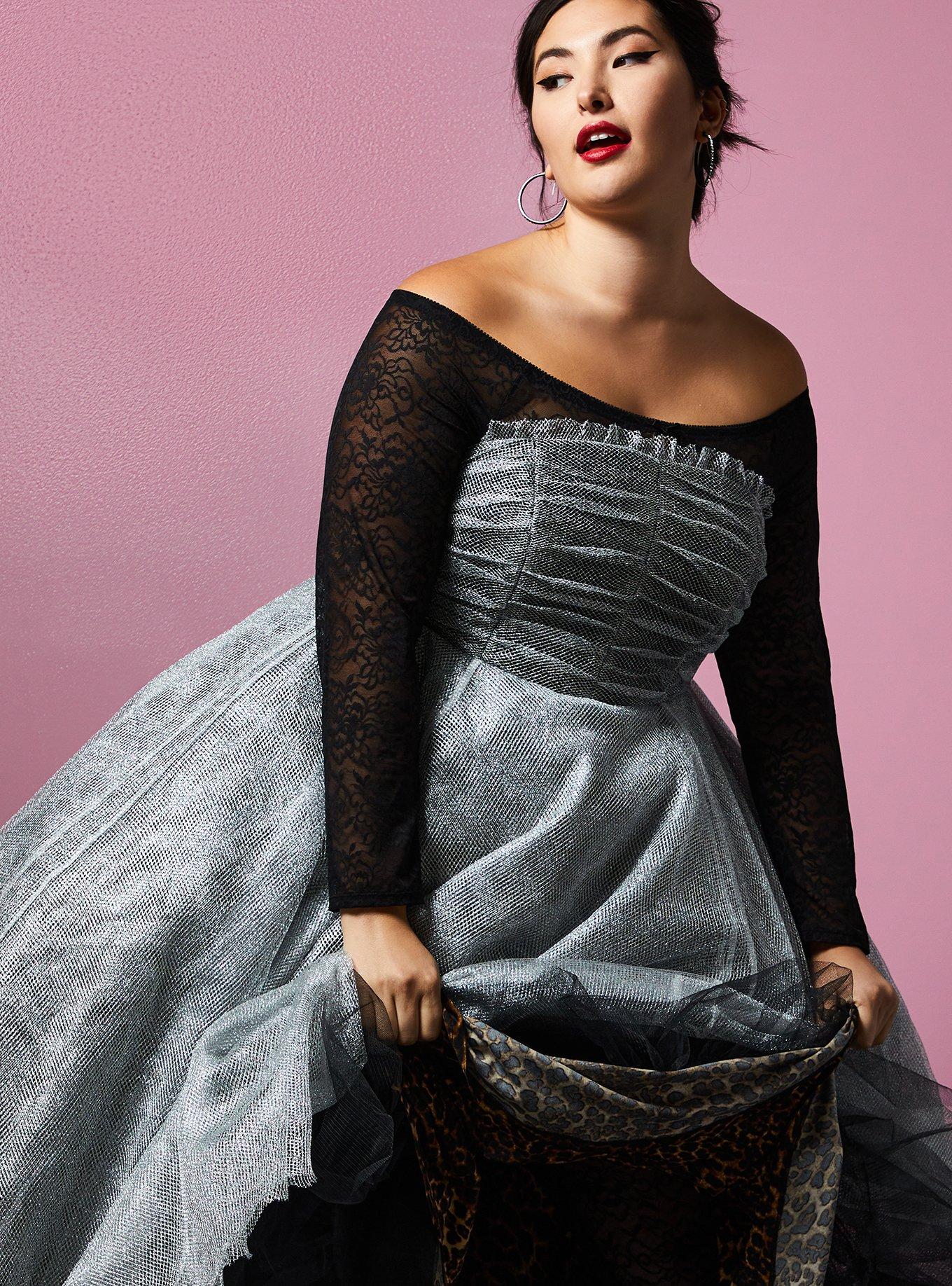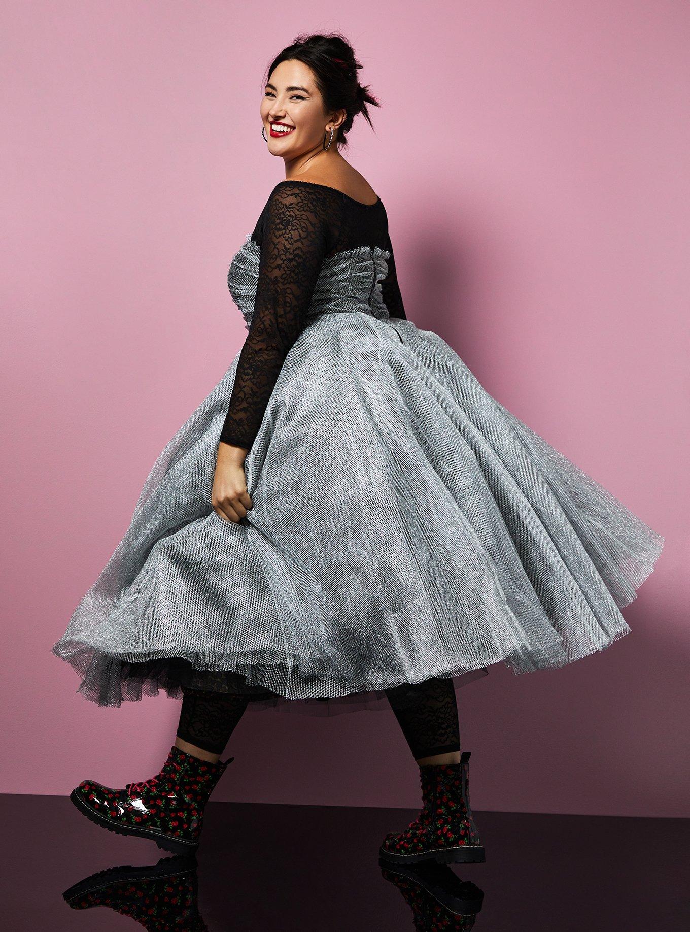 https://www.torrid.com/product/betsey-johnson-shiny-silver-tulle-strapless-dress/14270569.html