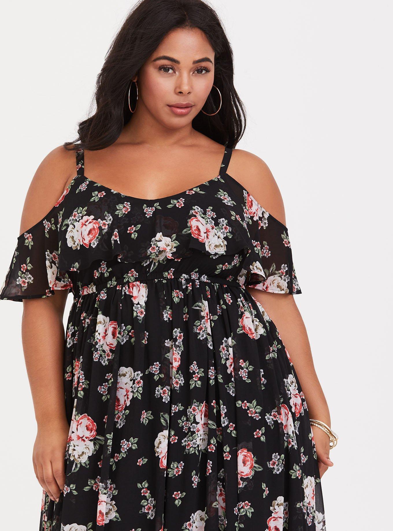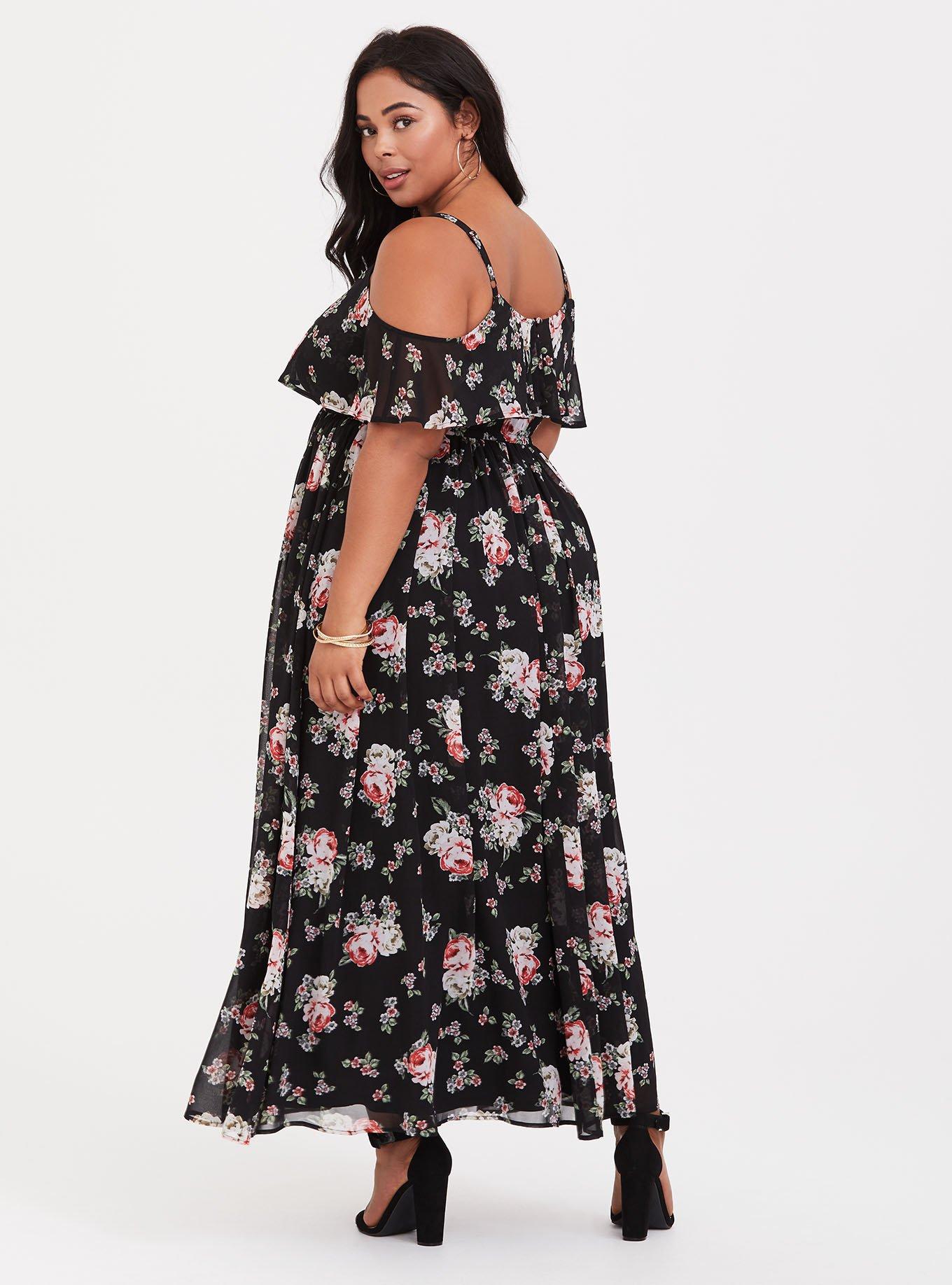 Black Floral Cold Shoulder Chiffon Maxi Dress is rated 4.9 out of 5 by 17.