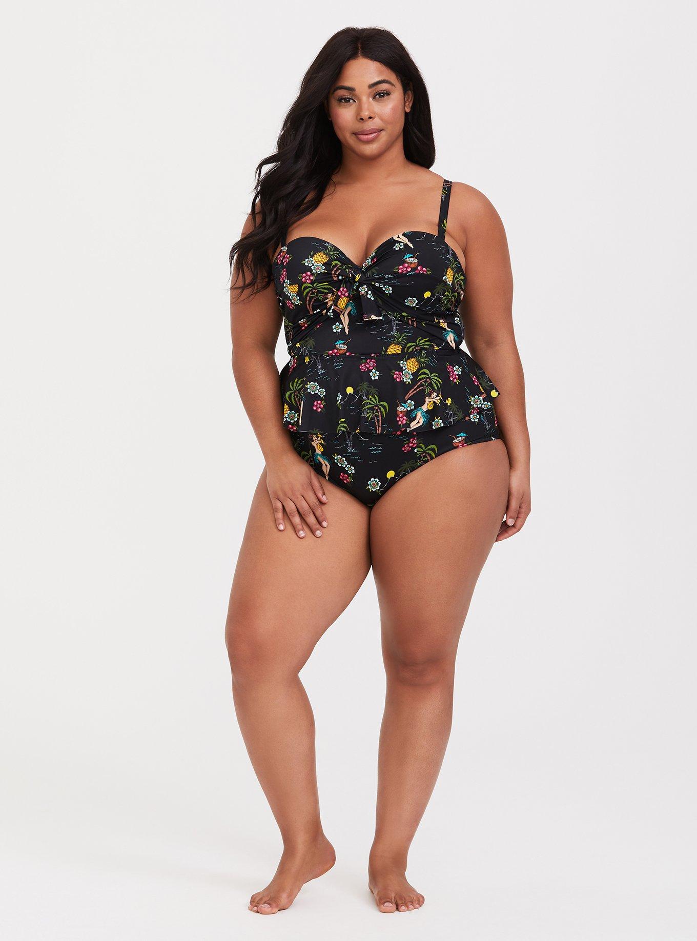 Rated 5 out of 5 by from Finally a sexy plus size suit! I am too heavy to the tune of 40K... while this is designed for an H cup, I was able to fit and look great in it. There is an added interior layer to help the suit stay down, will be buying Torrid suits every year!