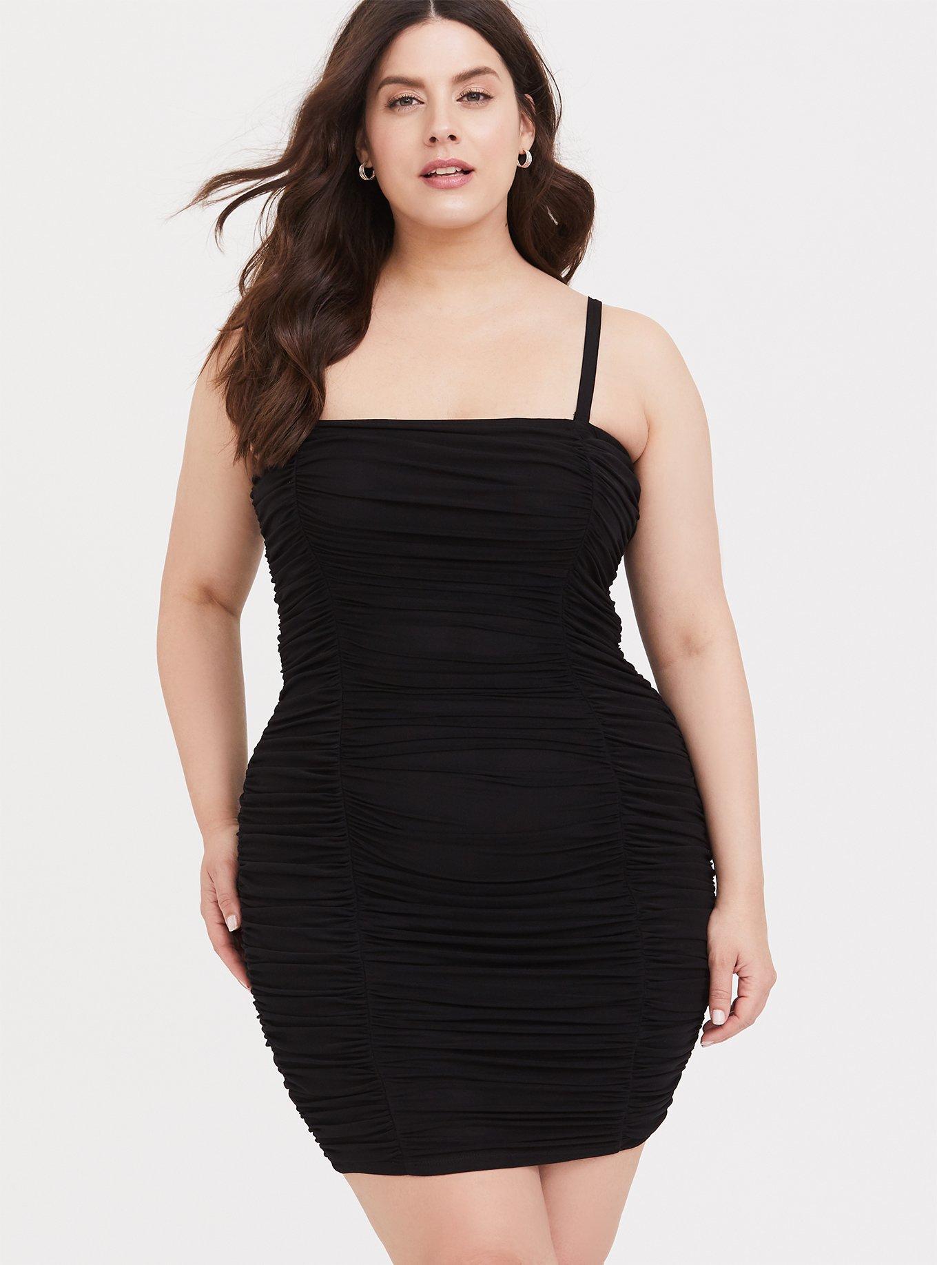 https://www.torrid.com/product/black-mesh-ruched-mini-bodycon-dress/11966023.html