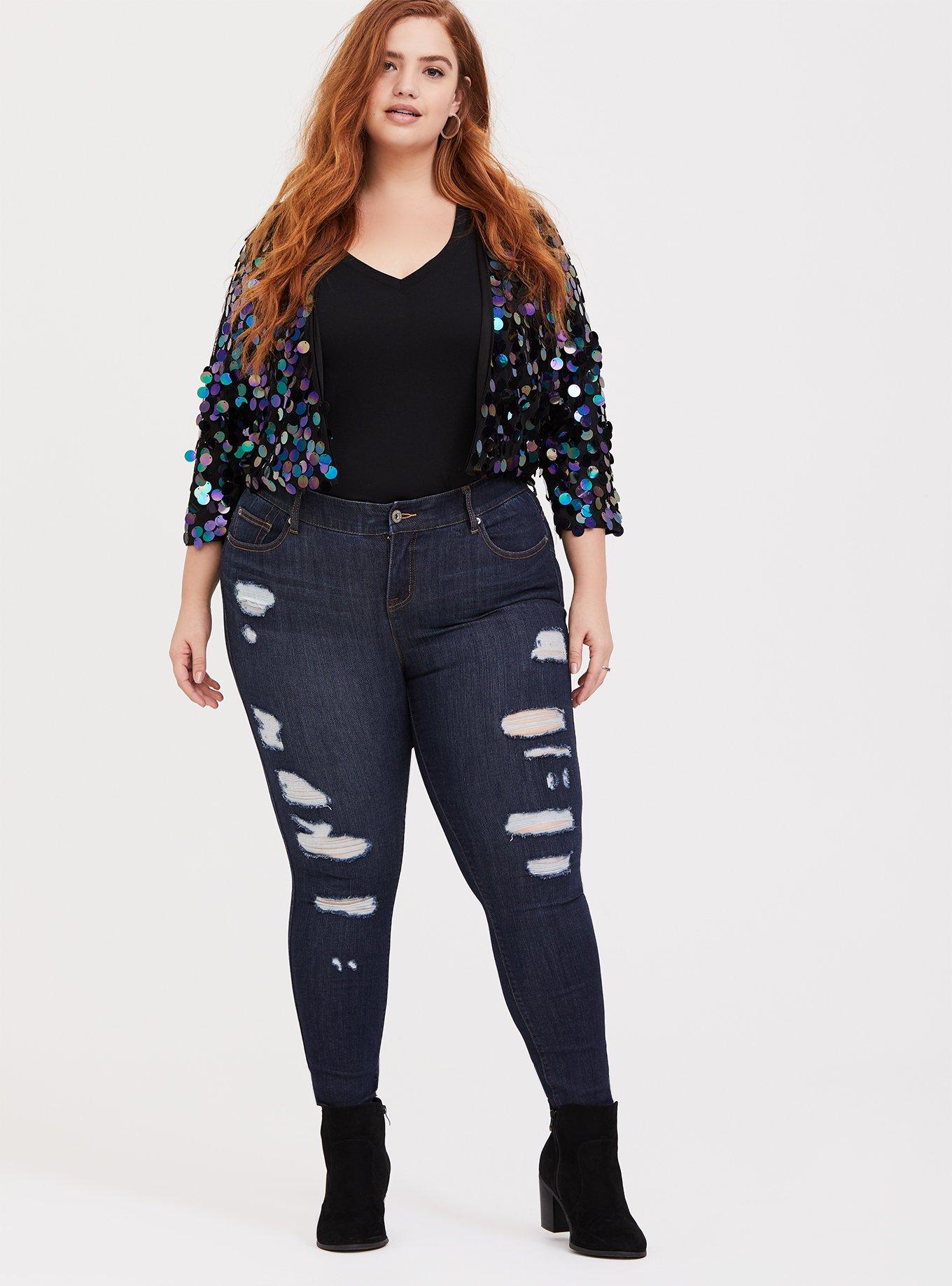 Rated 5 out of 5 by from So fun & sparkling I saw this jacket, I could not stop thinking about. I love, love, love it!! I went a size up so I could wear it with a sweater under it if I wanted to.