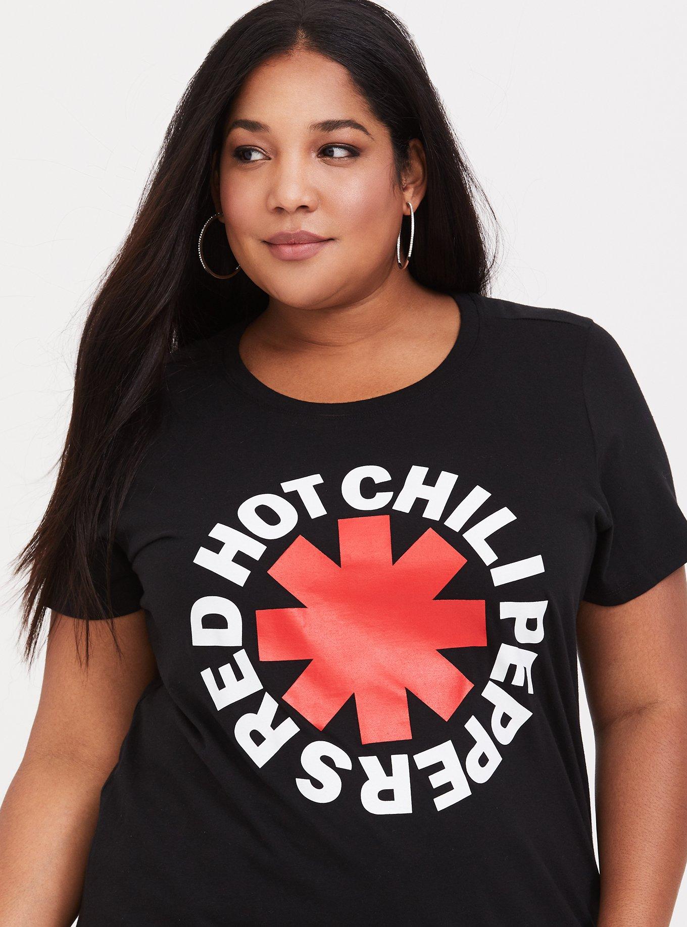 Rated 4 out of 5 by from Old school T material with a nice fit I liked that this material is like t-shirts of the past, substantial cotton but also stretchy. Its cool to finally be able to wear a RHCP t shirt that looks good/ fits considering I went to my first concert in 1991 (yes I'm old af). Thanks Torrid for coming thru on that.