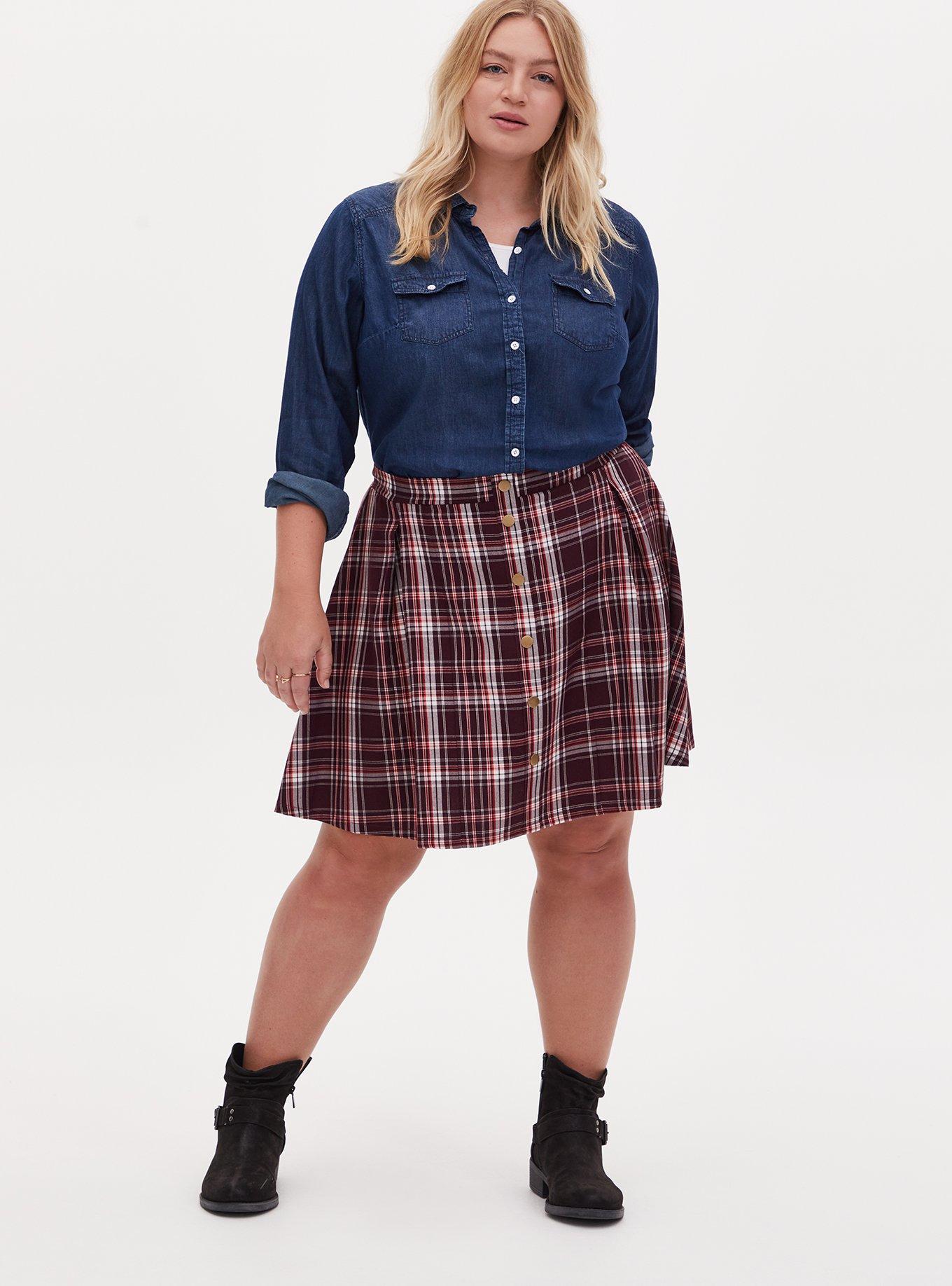 Rated 5 out of 5 by from Simple and cute! This skirt fits true to size and is really cute. The pleats and buttons add a nice feminine touch. Well done Torrid!
