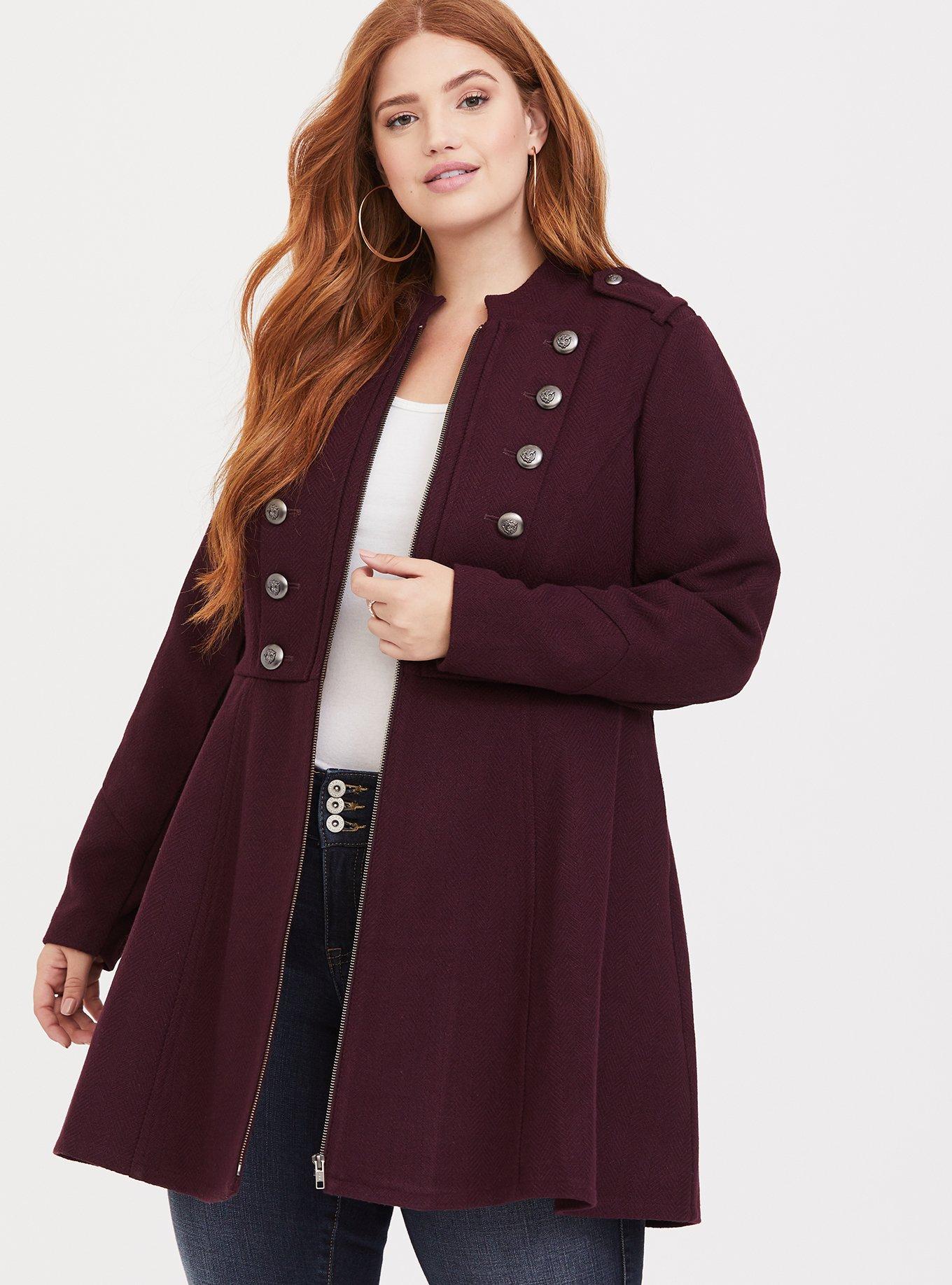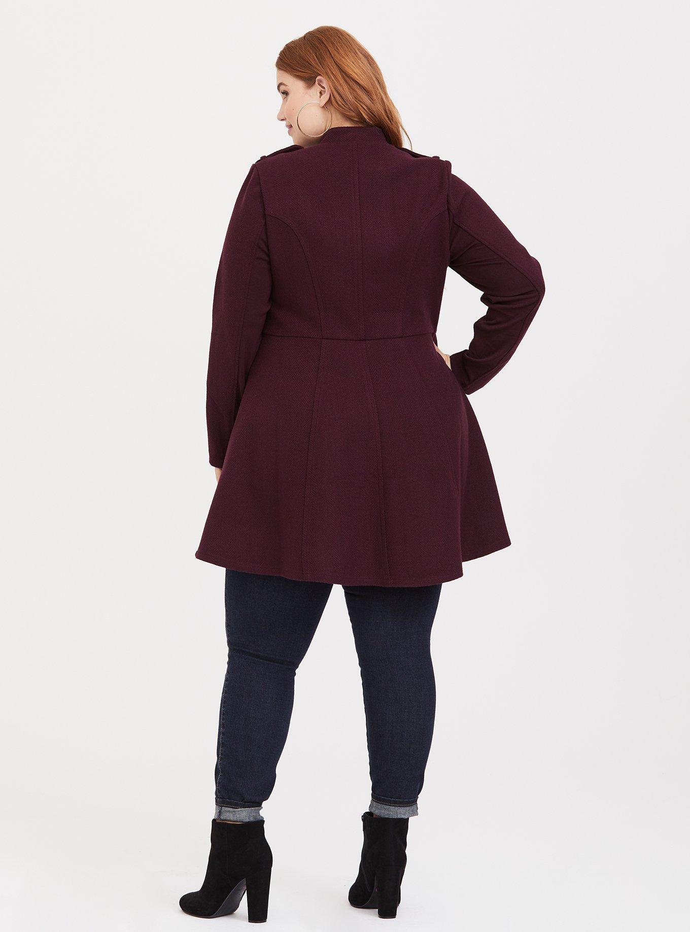Burgundy Zip Military Coat