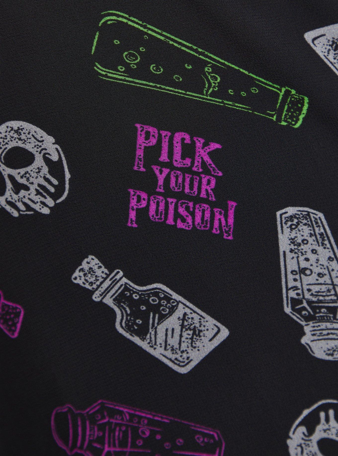 I love everything about this top, the material, the print and the fit. I recieved many compliements when I wore it. Perfect for Halloween time.