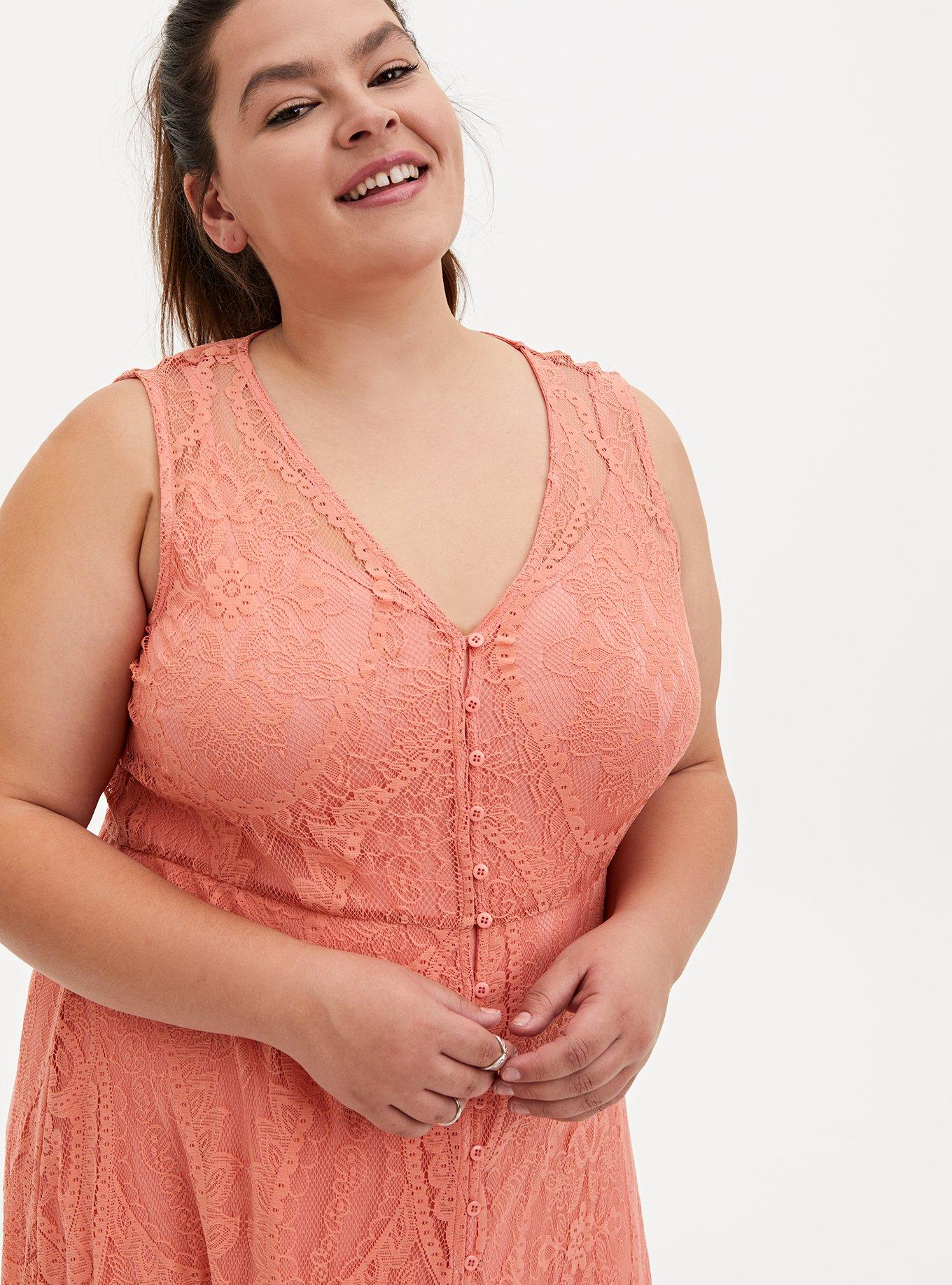 Rated 5 out of 5 by from Coral Lace Maxi Dress This dress is nothing short of incredible. The picture online doesn't do it justice. The fabric and color is beautiful and the fit is amazing.