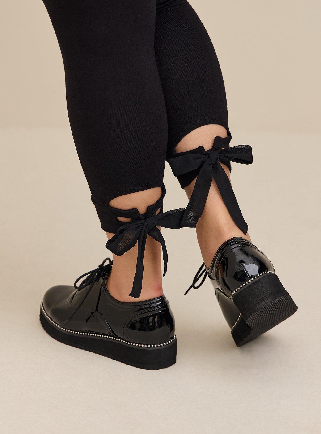 I love Torrid leggings, especially when they add cute details like this! When I wash them I take the ribbon out in order to keep the ribbon from getting messed up in the washer. I'm 5'5" and the leggings are like 7/8 length on me.