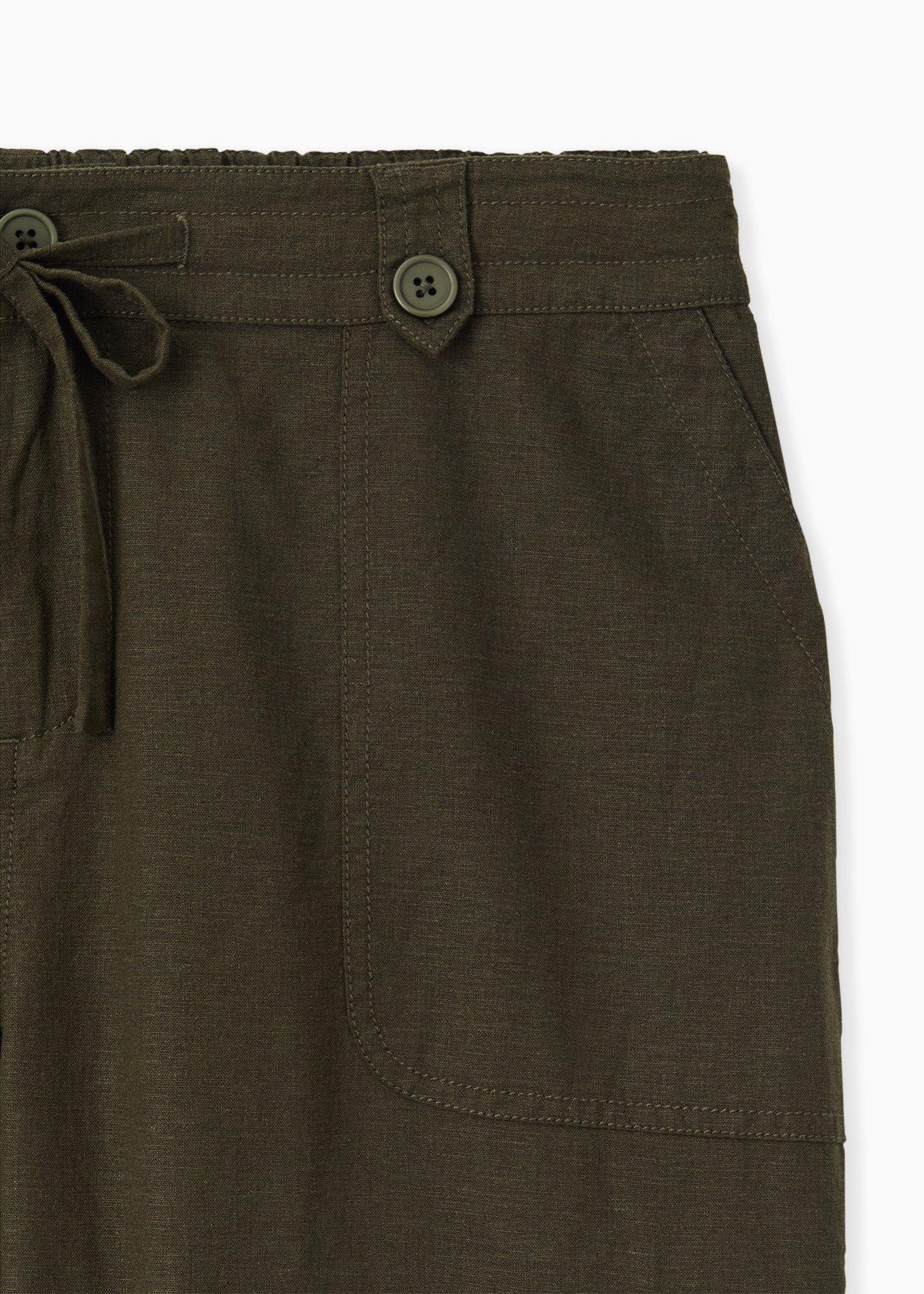 Crop Drawstring Cargo Pant - Linen Olive Green