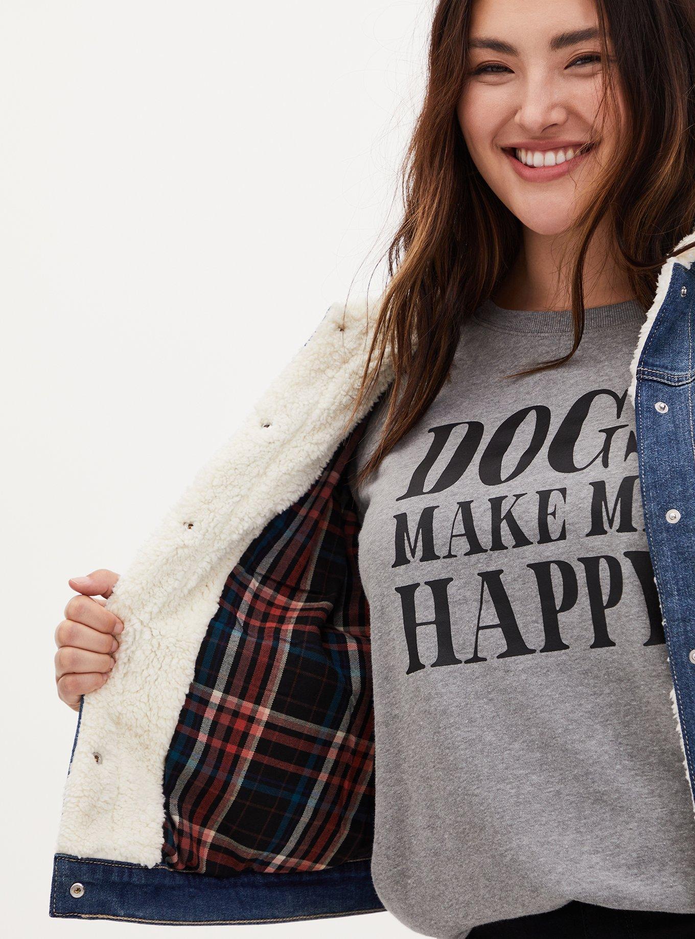 I actually bought two of these jackets went for myself and went for my friend and she was so in love with it because it was so comfortable with the stretchy denim and it was warm with the black and red buffalo plaid lining and the sherpa collar. It does run a bit bigger because of the stretchy denim. I didn't size down I bought my regular size because I wanted that extra little room in case I wanted to wear a sweater underneath. But by all means you don't need it because this jacket is nice and warm cozy and lightweight.