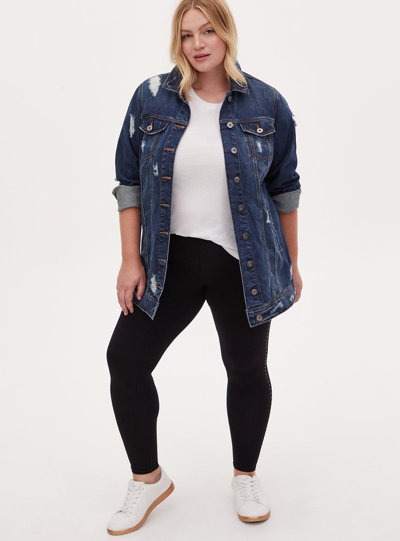 Rated 5 out of 5 by from Love it! I'm 6'0 with a long torso so I love when Torrid comes out with longline options. This jacket did not disappoint. I only wish it was closer to fall so I could wear it! I loved the frayed spots.