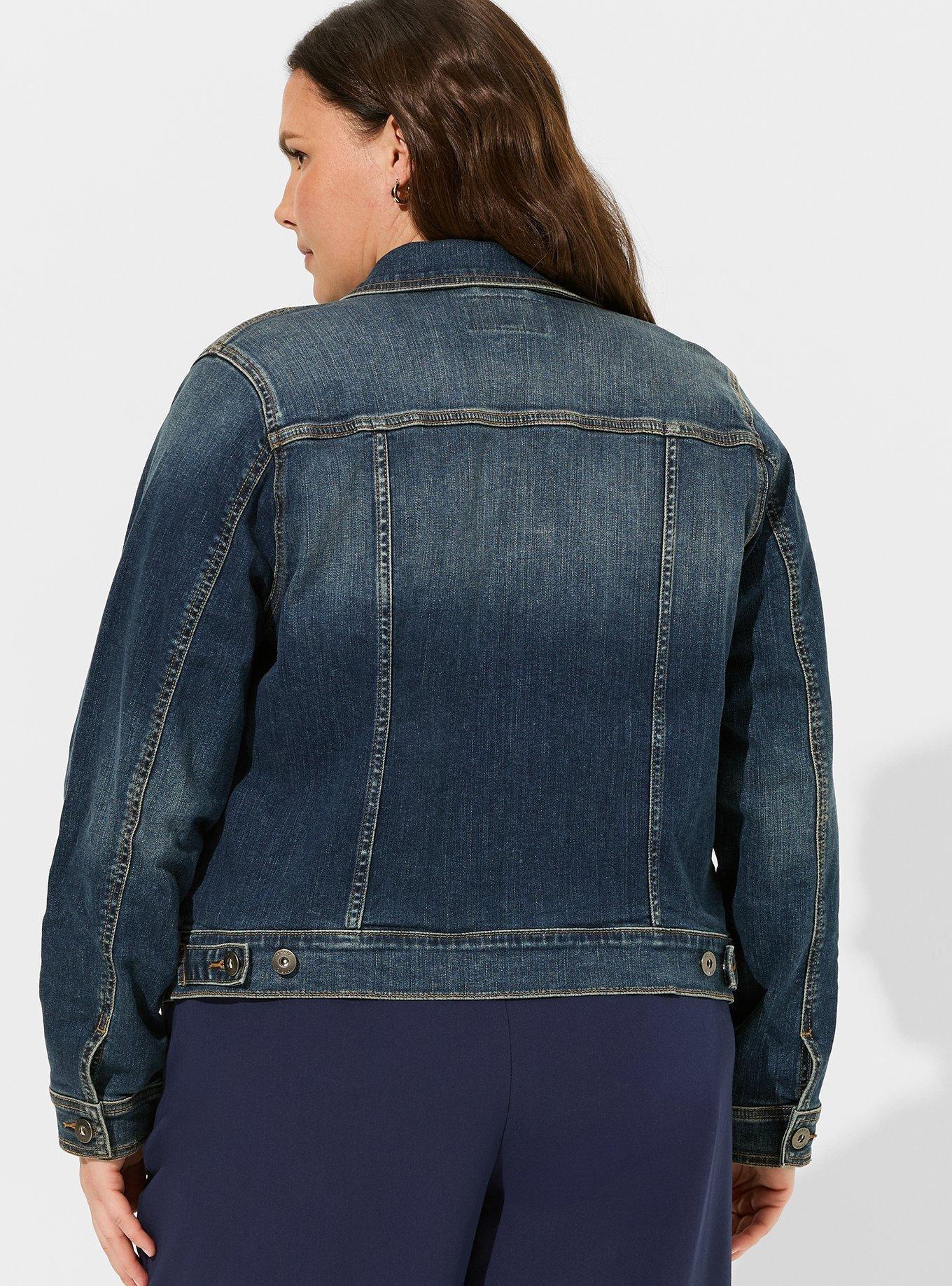 Rated 5 out of 5 by from Favorite new denim jacket Love this denim jacket! I’m usually a size 1 in torrid but bough a size 0 and fits perfect! There’s enough stretch for my arms! I did buy it smaller because I wanted a more fitted look!