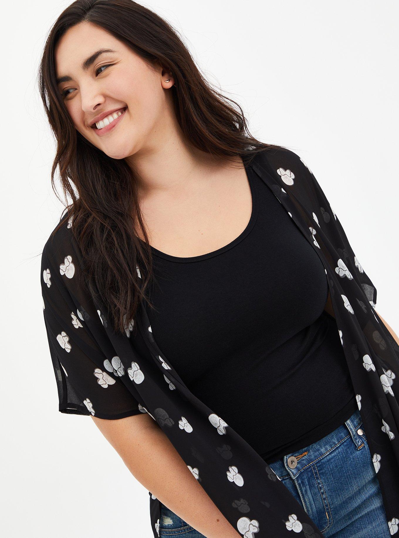I bought this Minnie Kimono in March and I wear it as often as I can! I am a HUGE Mickey and Minnie fan girl and when I found this I was in love!! It’s light and it helps cover those not so lovely spots on my body plus it makes me feel amazing!!! Torrid please come out with more Mickey and Minnie items!!! The only negative I have is the pricing! Please lower the prices! I LOVE torrid but can’t afford to shop as often as I like bc of the prices!!!