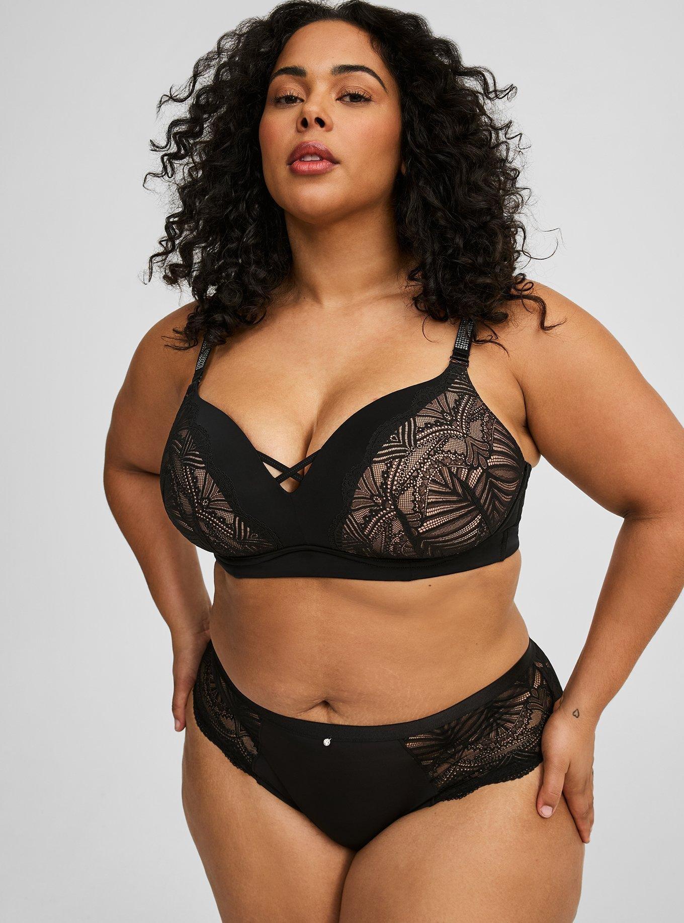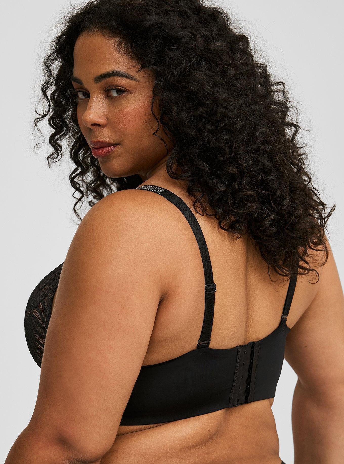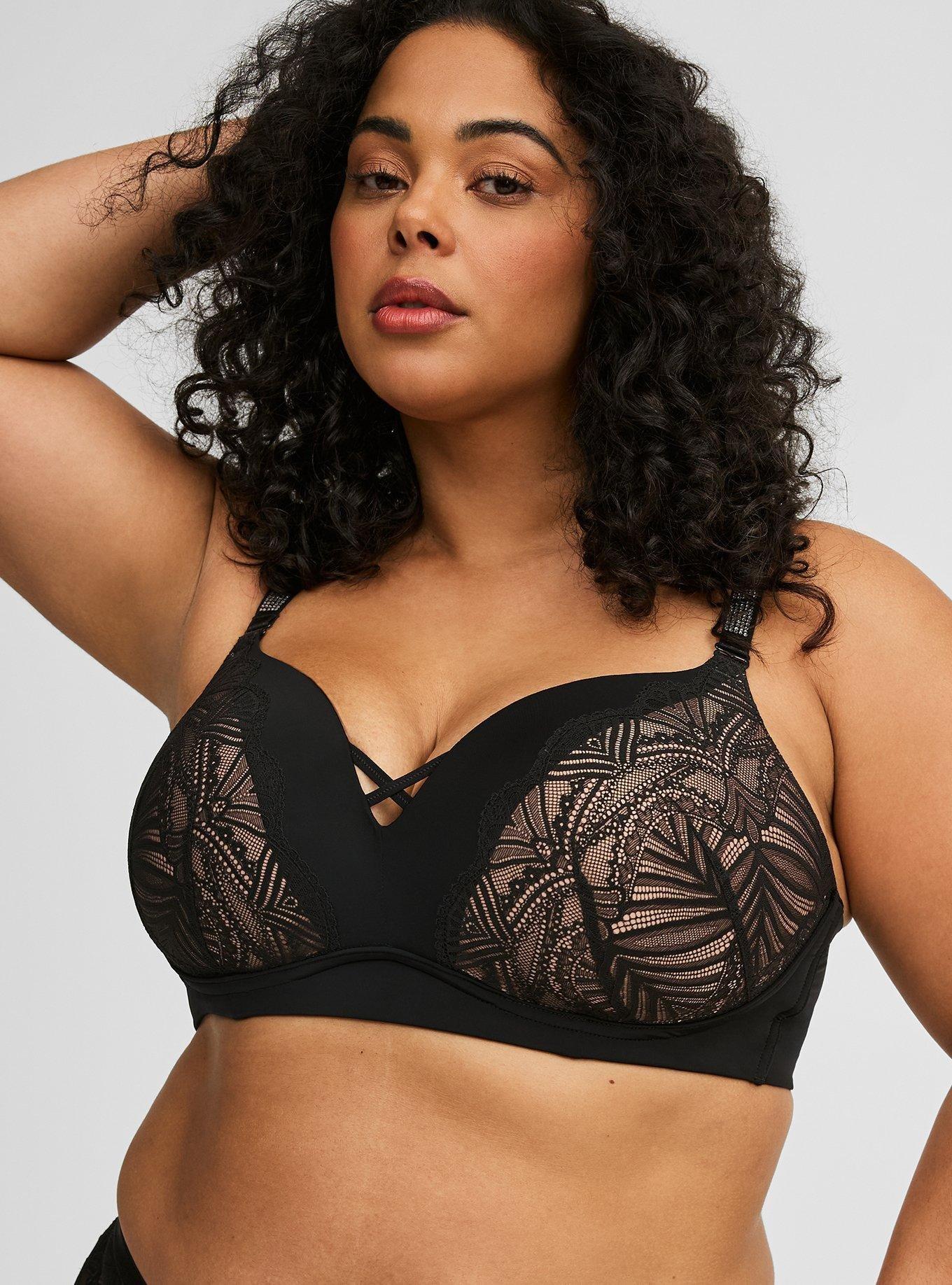 To be honest this is probably my new favorite bra. I have since started wearing torrid wireless bras in the last year after only ever wearing torrid wired bras. This one is sexy. Cute. Comfy. Love the diamonds. Fits true to size. Just bought a second one. I love this bra.