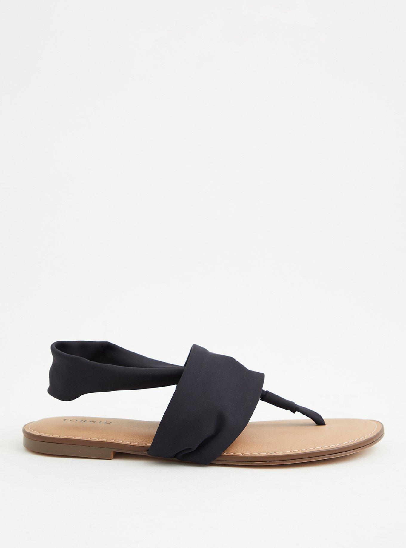 Rated 5 out of 5 by from Perfect I love, love these sandals. The material is stretchy, but stays snug. They are so comfortable. I had a pair similar to these before and had been looking for like this for a long time. Thank you Torrid! \