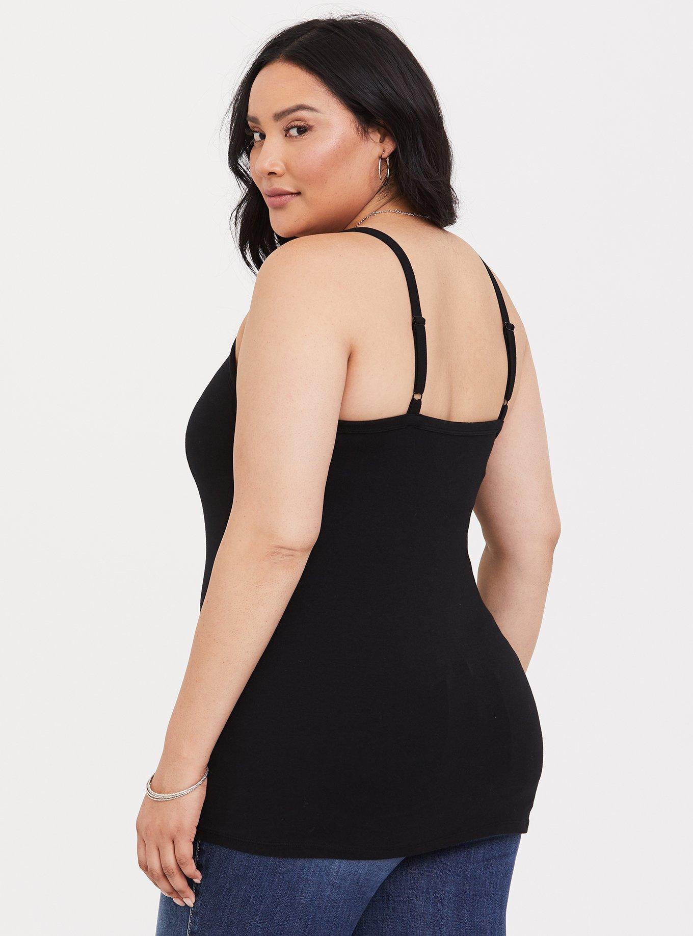 I bought this because I miss having the old style of bras with the "shelf-bra" in them, and so when I saw Torrid had 2 of them in their new arrivals selection, I decided to give this white one a shot. And wow, I do not regret it. It really does its job! I am BIG CHESTED and this tank holds me in and up. I feel comfortable walking around the house or running quick errands with this and a light jacket. The fact that it has adjustable straps too is just amazing. Torrid really hit it out of the ballpark with this, and all their foxy tanks, tbh. Really love it, thanks for bringing back the shelf-bra cami, Torrid!!!