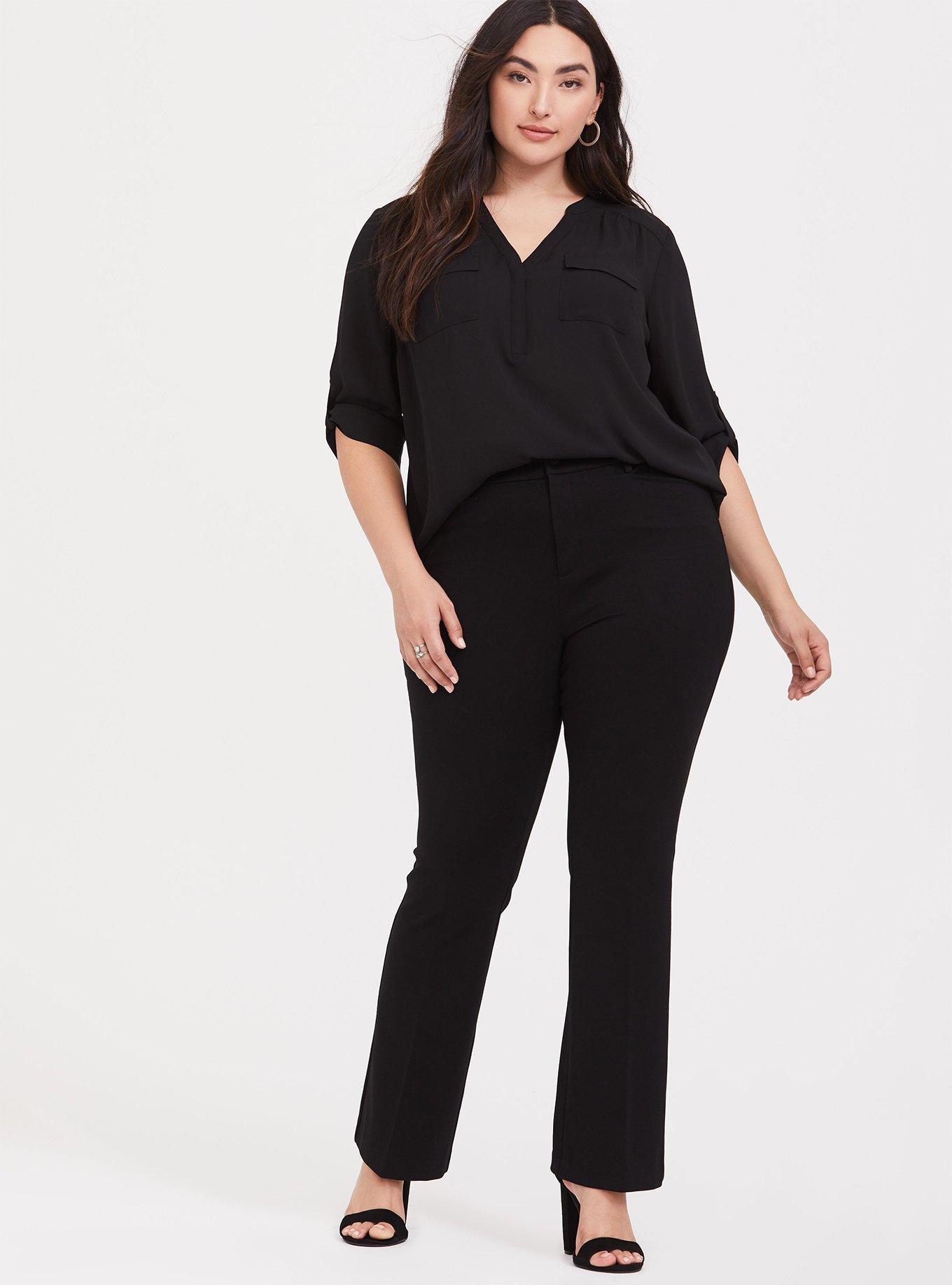 I just bought this on clearance. This blouse is so nice and comfortable. Great for the office. I paired it with Torrids peplum blazer.