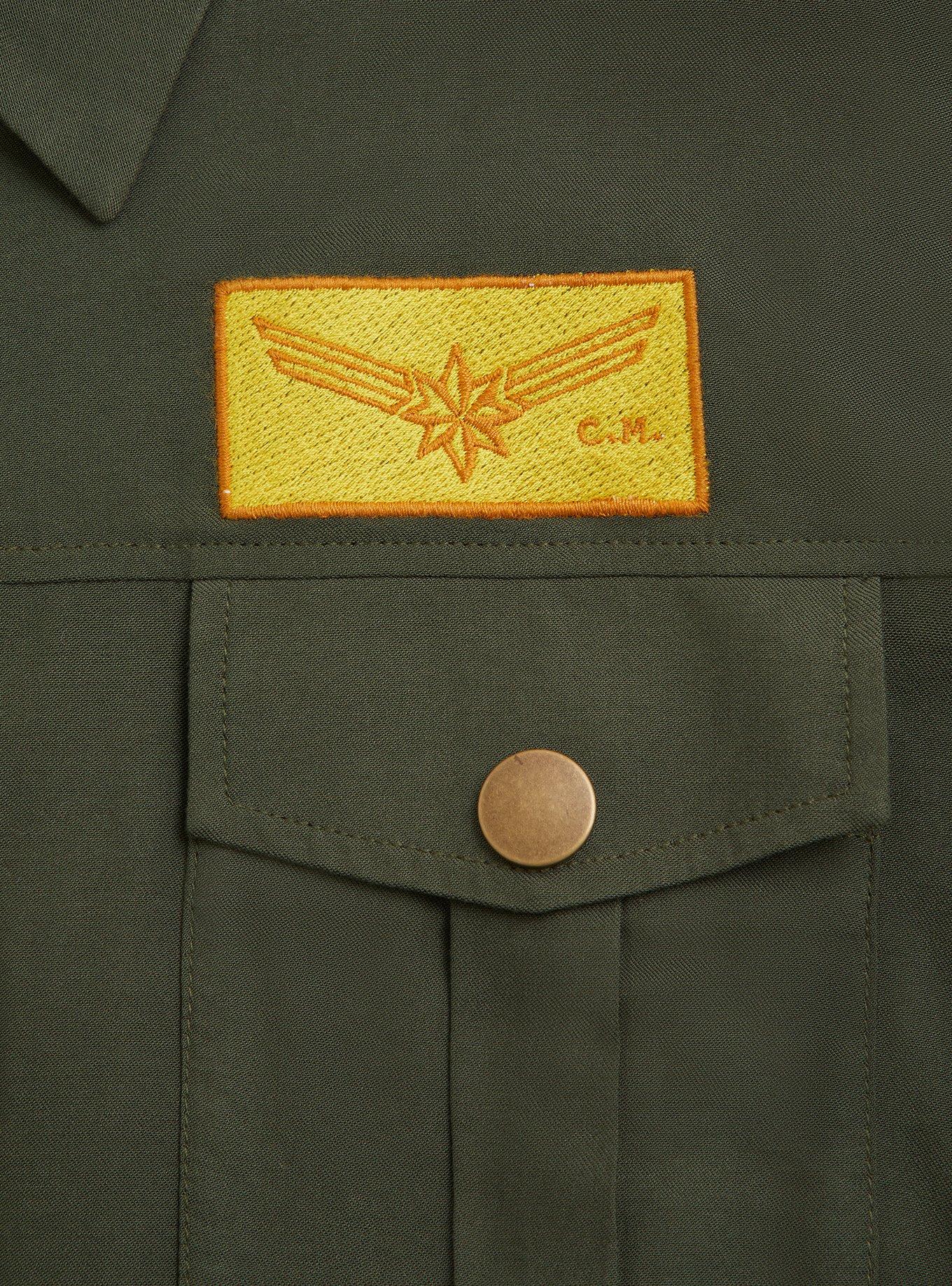 Her Universe Captain Marvel Olive Patchwork Shirt Dress
