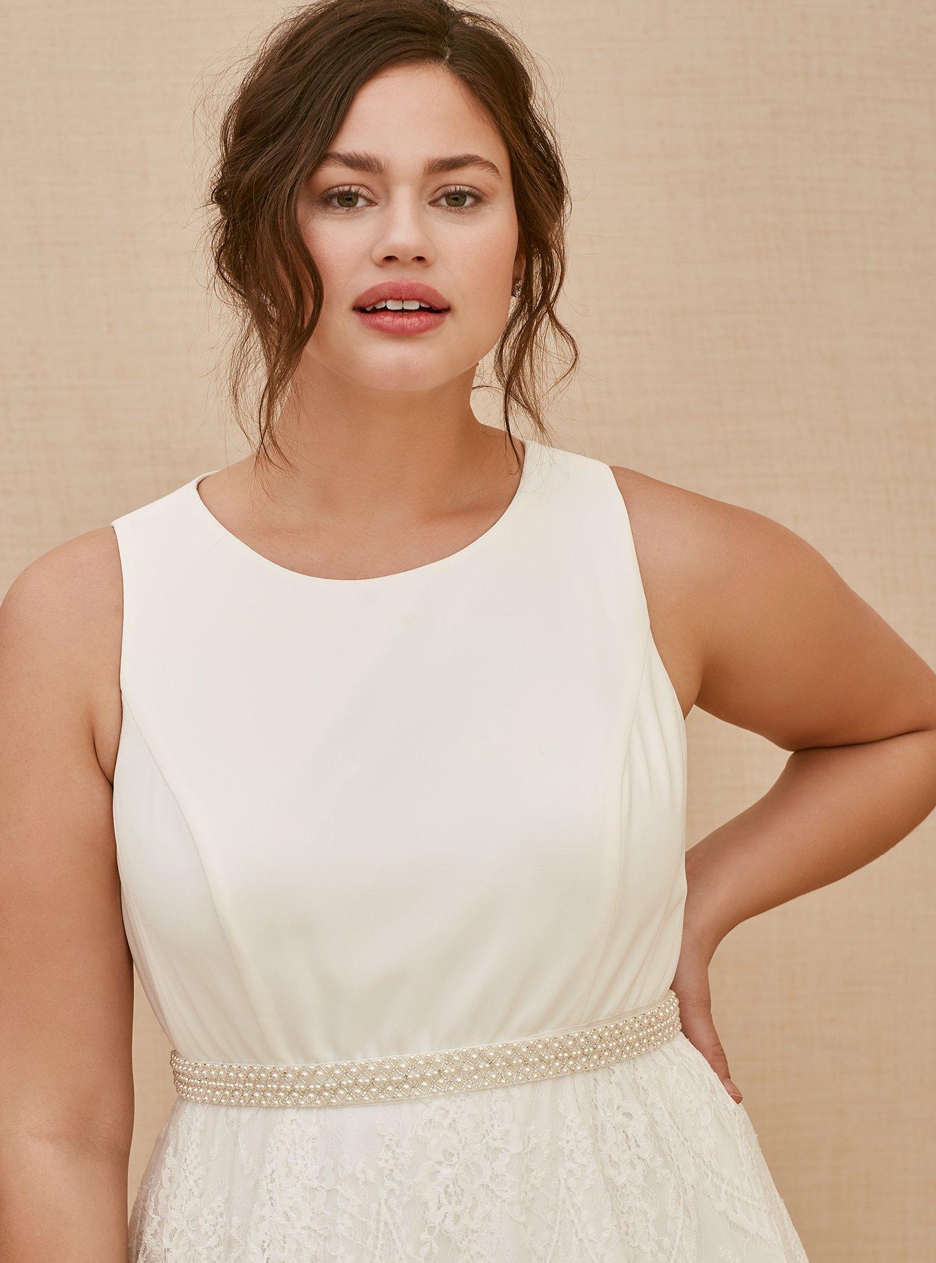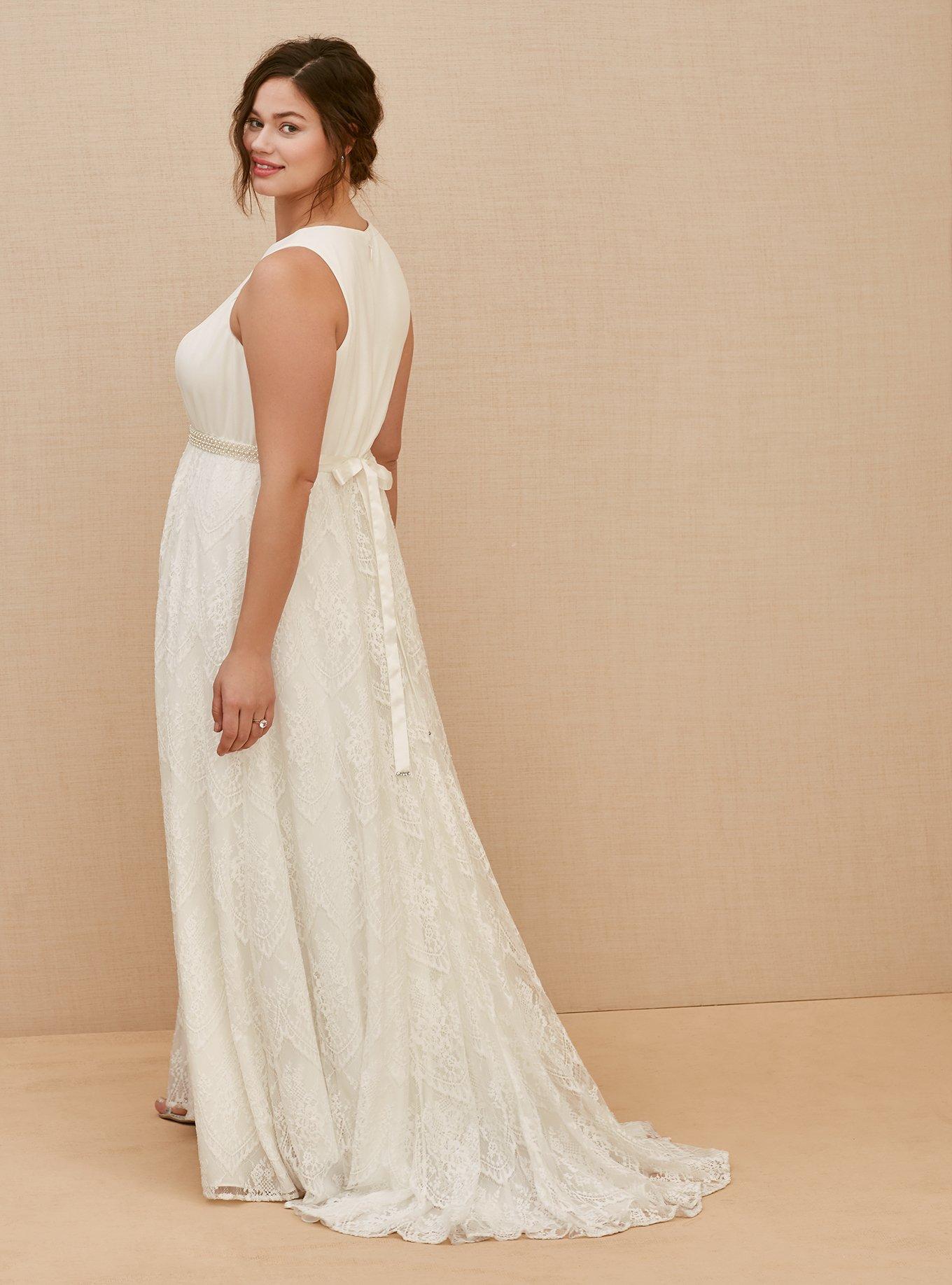 Rated 5 out of 5 by from This dress is gorgeous! I had to buy this dress because my original wedding dress will not fit me now for my August wedding now that I’m pregnant. I was a little worried about buying a wedding dress online with out trying it on but this dress! I am in love with it! Never had issues with anything I’ve ordered from torrid!