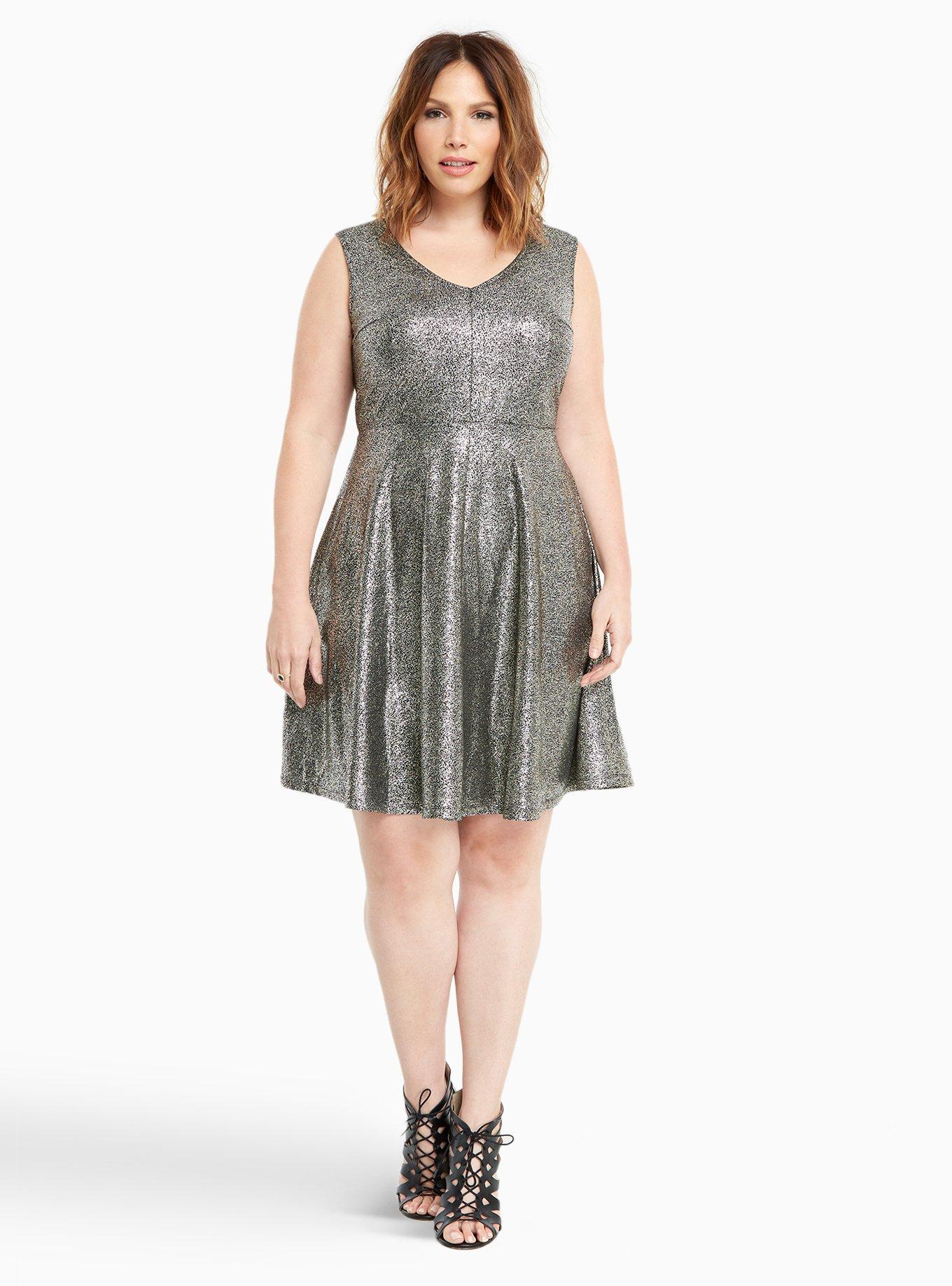 Rated 5 out of 5 by from Fun! I haven't had an occasion to wear this dress yet, but I will find one someday! It's very shiny and fun in person. I was worried that it would fit differently since it's foiled, but it doesn't--it's the same as all Torrid skater dresses. I got my usual size (2) and it was perfect!