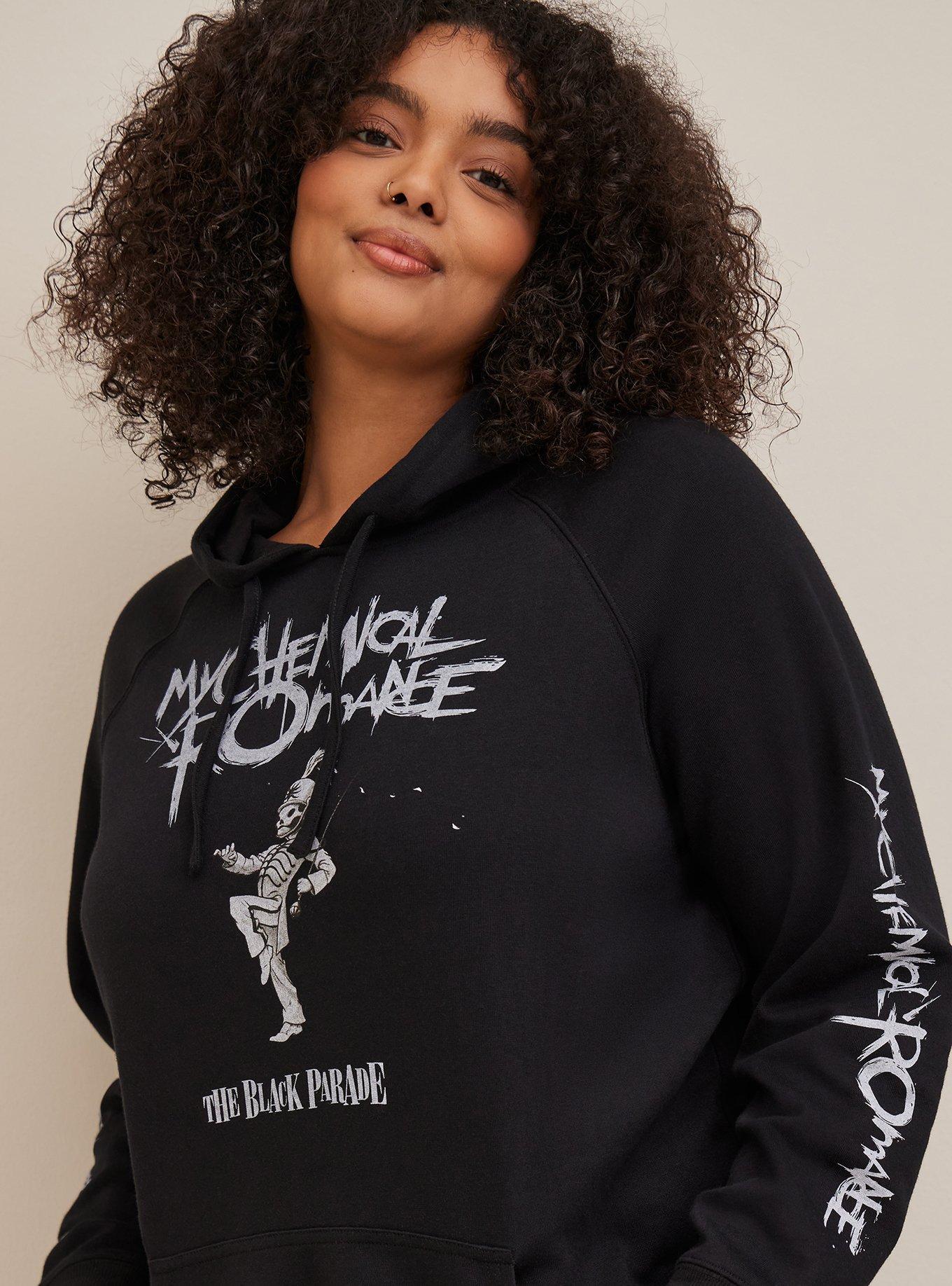 As soon as I saw this Torrid carried My Chemical Romance hoodie, and had to purchase it. I’m so glad I did. Super soft and really comfortable. Took the advice of the comments and sized up for an even more comfy fit.