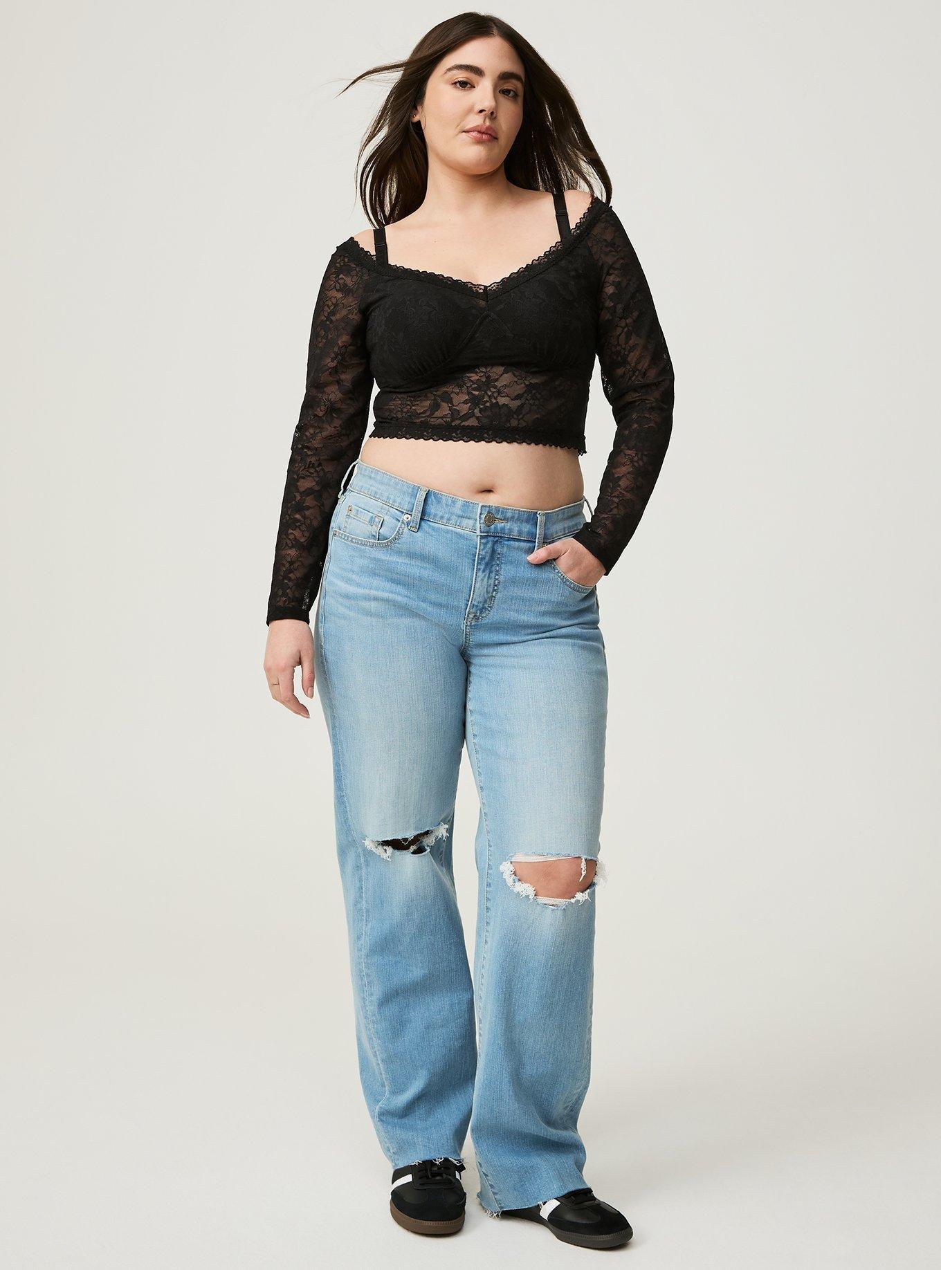 Rated 5 out of 5 by from Cute top! Cute for base layer or semi sheer top. Sizing feels similar to other unlined lace bralettes. Of note, this does not come with straps as seen in pics - the model is wearing a bralette sold separately from this off the shoulder top. I’m a 44/46 b/c and 3 fits well - my normal size for bralettes. Might be snug for larger bust or broader shoulders.