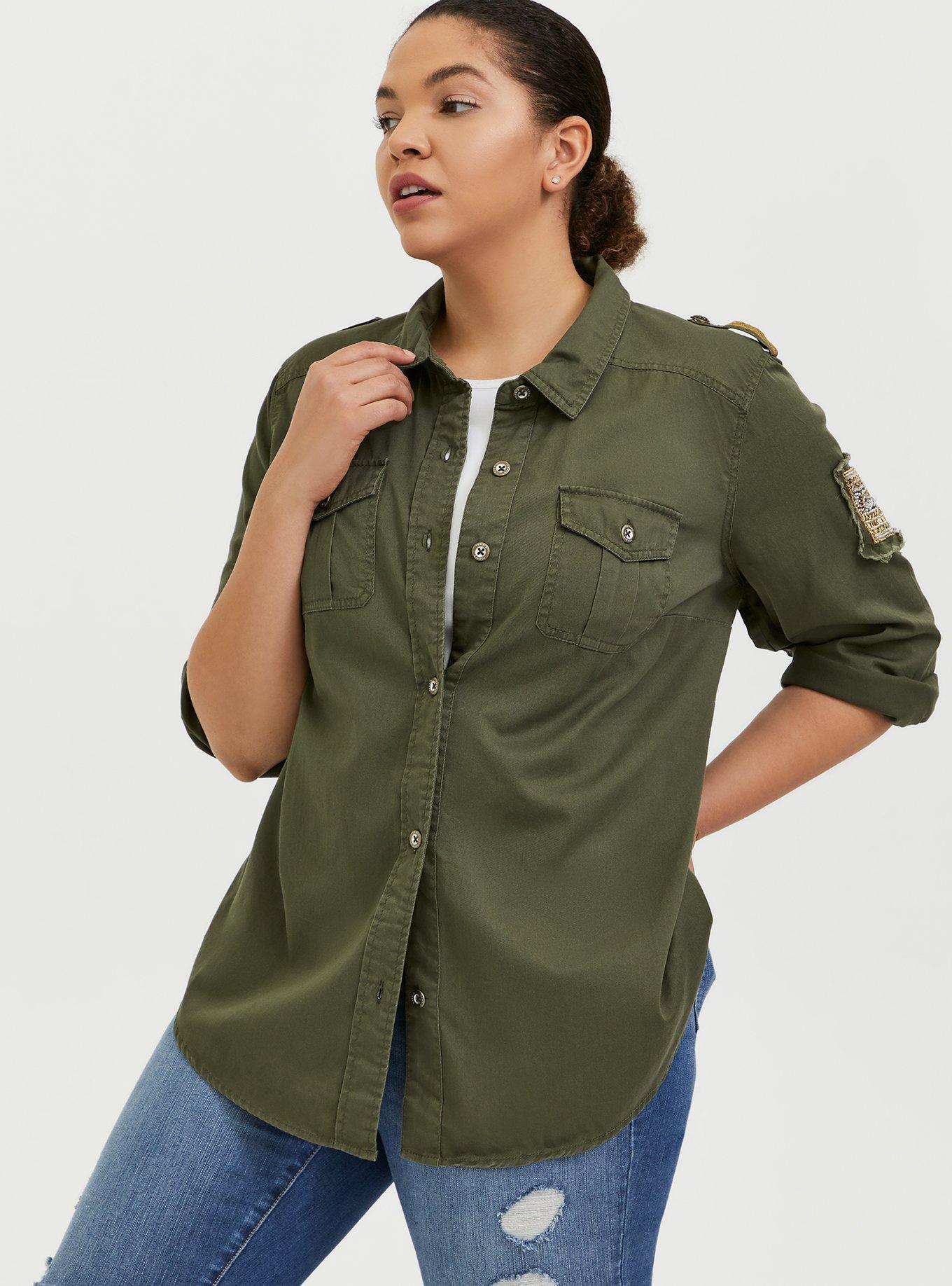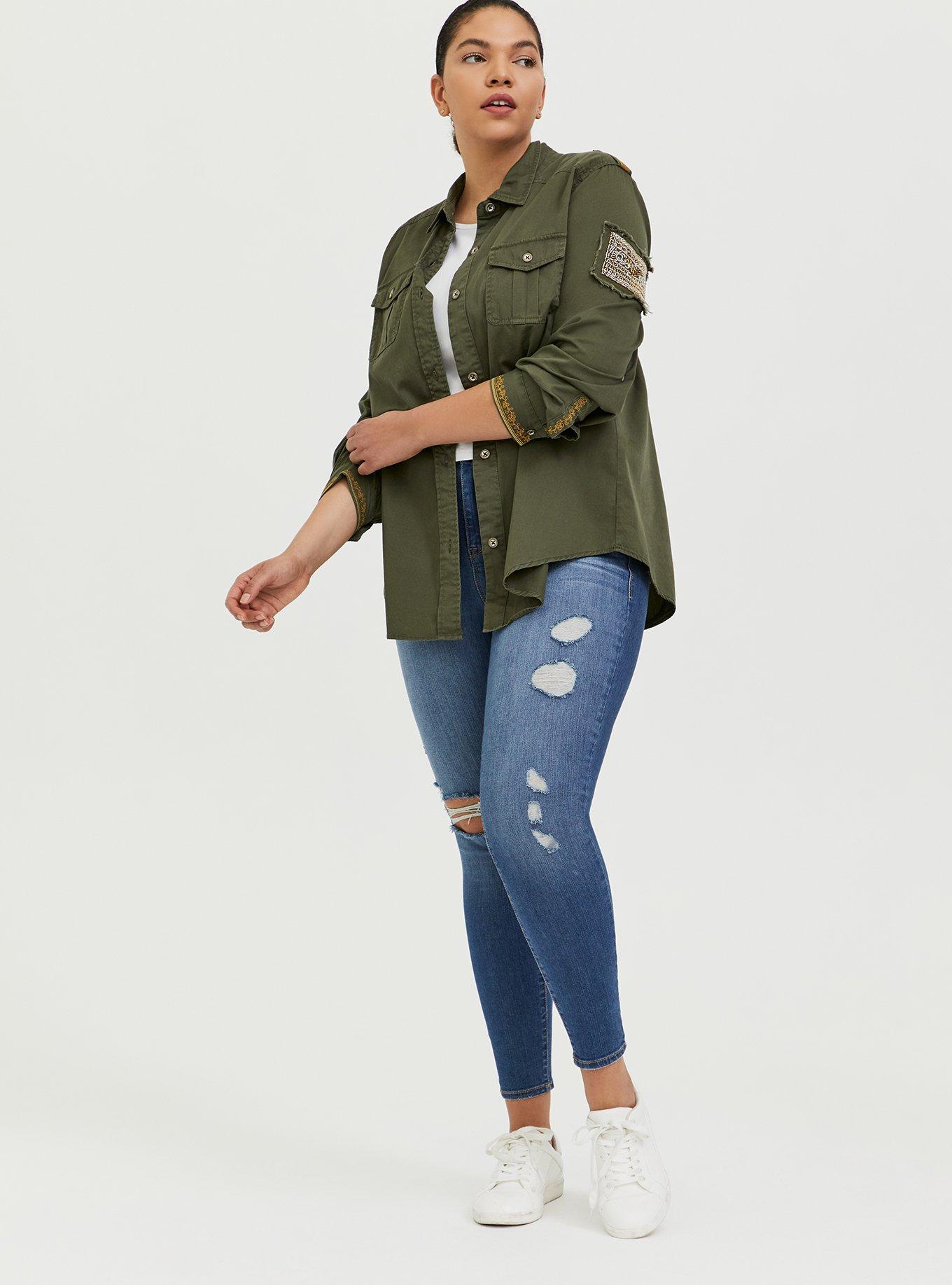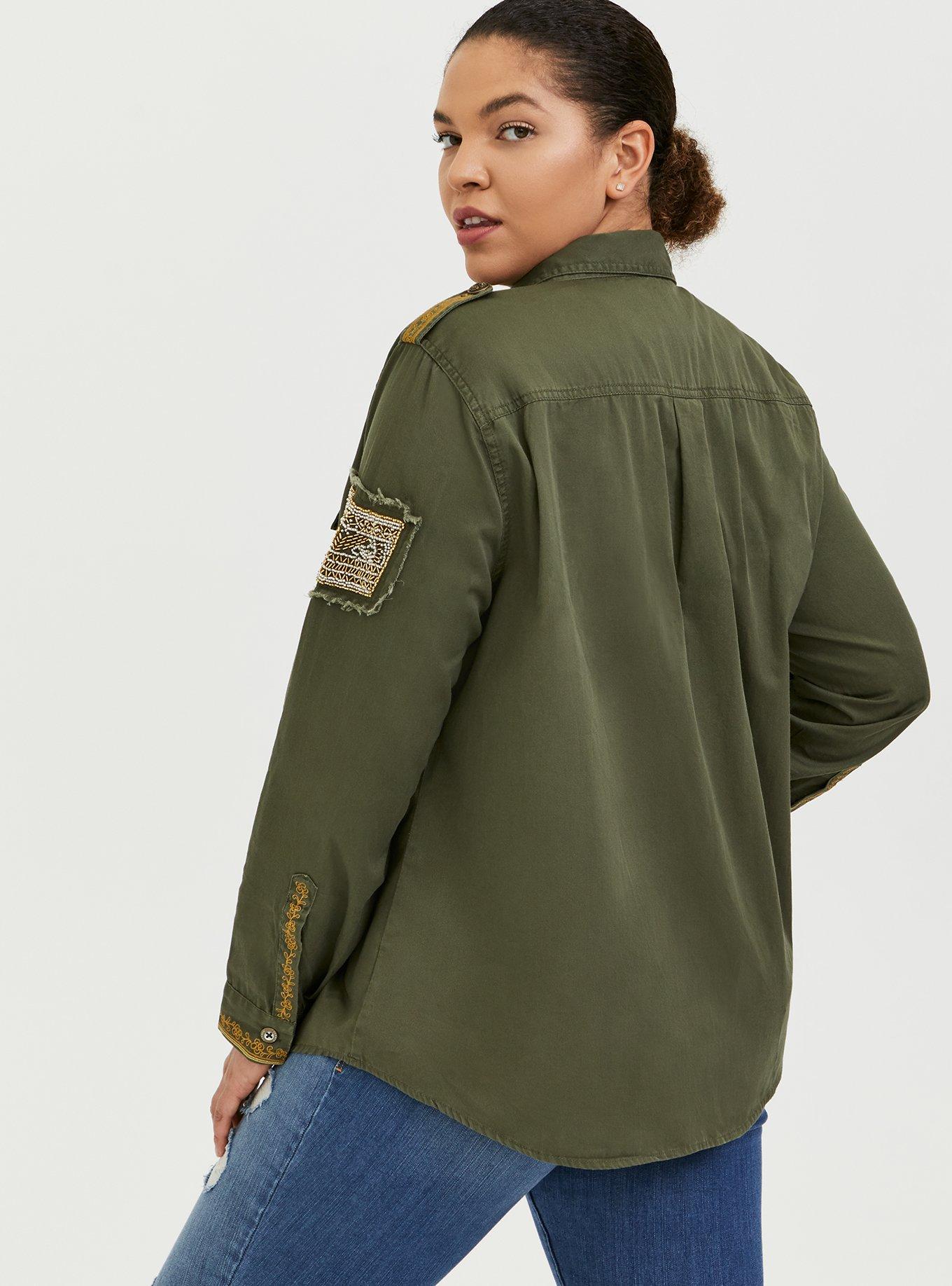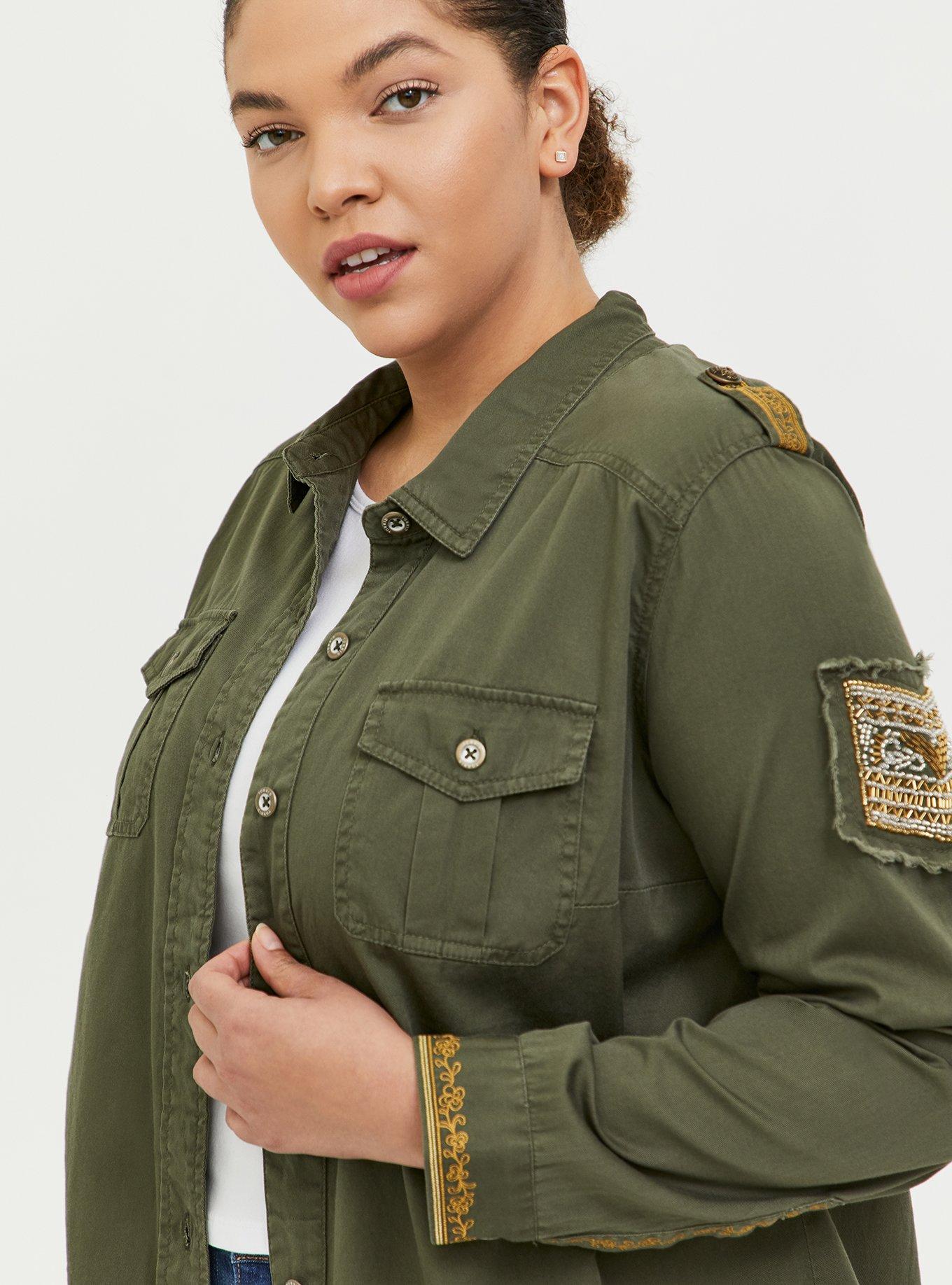 Olive Green Twill Military Embellished Jacket is rated 4.1 out of 5 by 15.