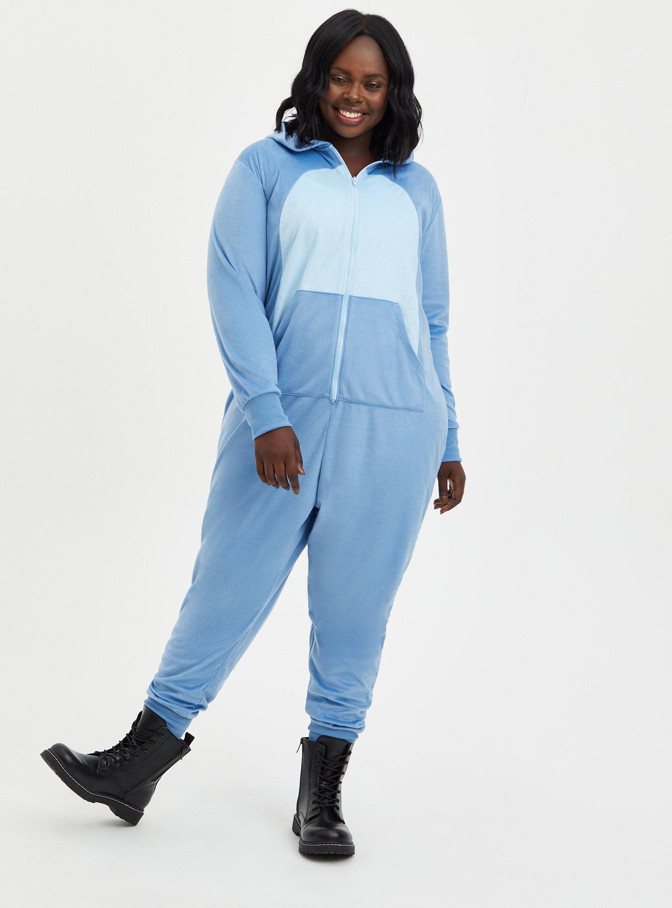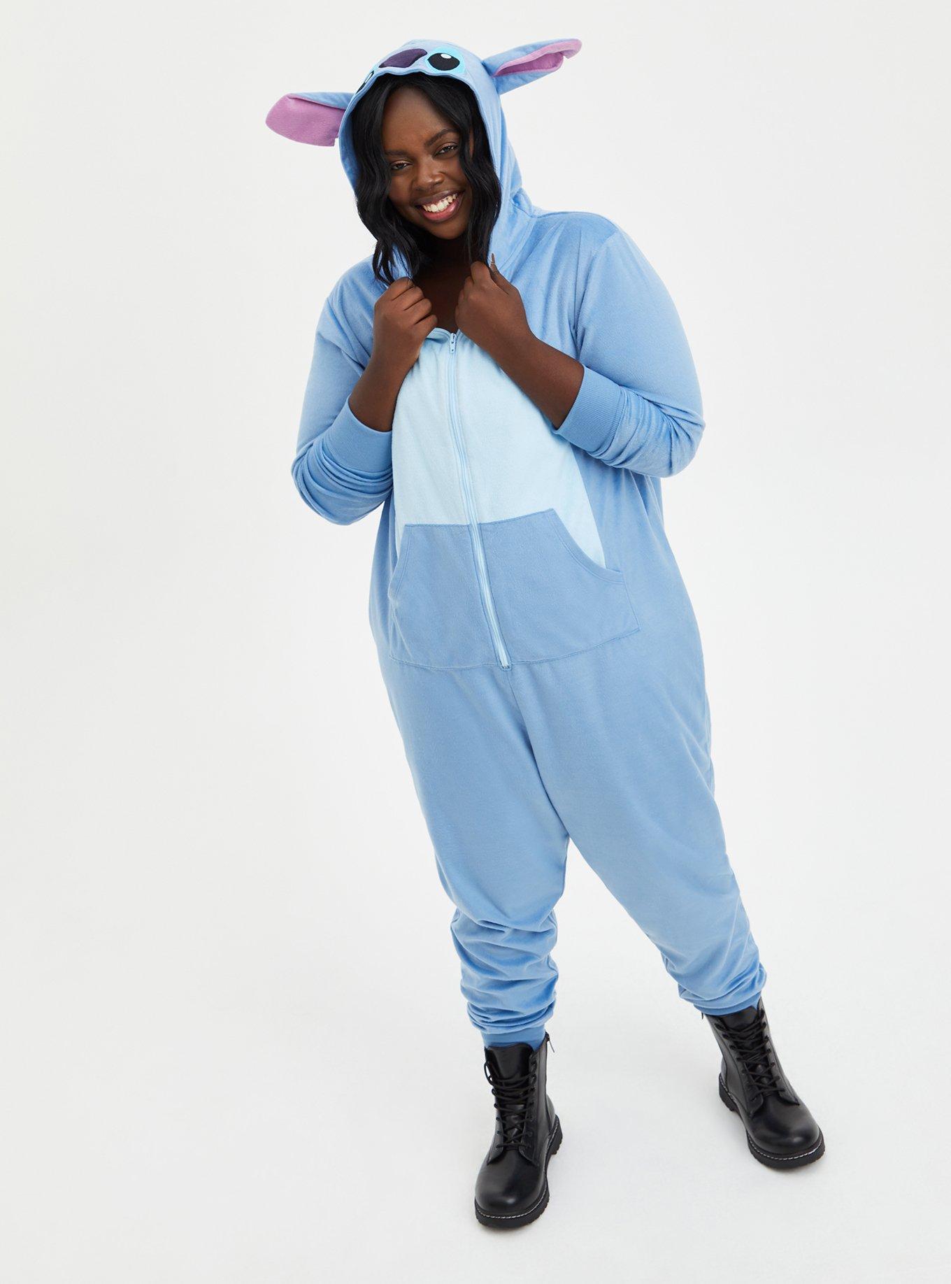 Rated 5 out of 5 by from Huge fan, so cozy Stitch is one of my favorite Disney characters so I was really excited to see a Stitch onesie! I tried it on and it fits perfectly. Torrid cuts it with a flattering fit to the stomach. I also like that it doesn't have feet so it's a bit more adjustable and less hot. I wore it to a party tonight and got compliments and stayed cozy. It's a little longer in the crotch since I'm on the shorter side (5'5") but not so bad that it looks awkward. Material is very soft.