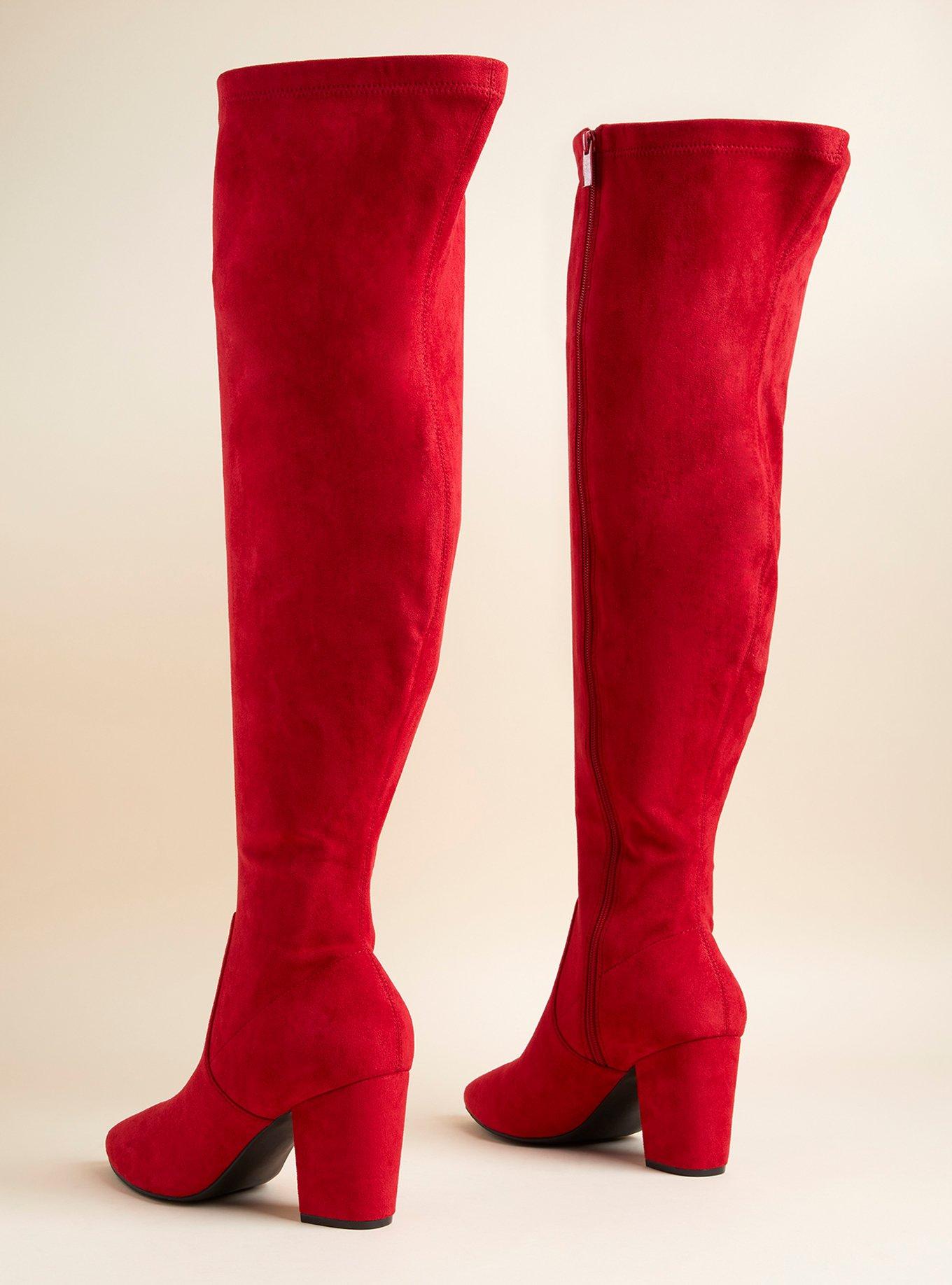 Rated 5 out of 5 by from Fire!! These "Over The Knee" Red Boots were absolute FIRE!! Received compliments from the ladies and definitely from the gentlemen! True statement footwear! The boots are comfortable, obviously stylish and easy to walk in. They stayed in place while walking; did not slide down my thigh. Recommend purchasing a half size smaller than you normally wear as Torrid actually caters to a real plus size woman (so grateful). Thus, if you regularly wear a size 10, purchase a size 9.5. Extremely satisfied client! Happy shopping!
