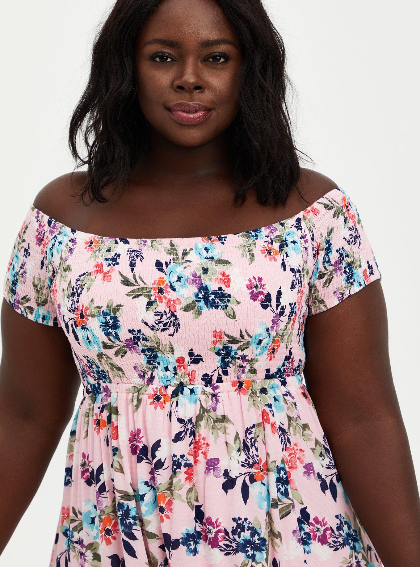 Pink Floral Off Shoulder Gauze Hi-Lo Maxi Dress is rated 4.6 out of 5 by 23.