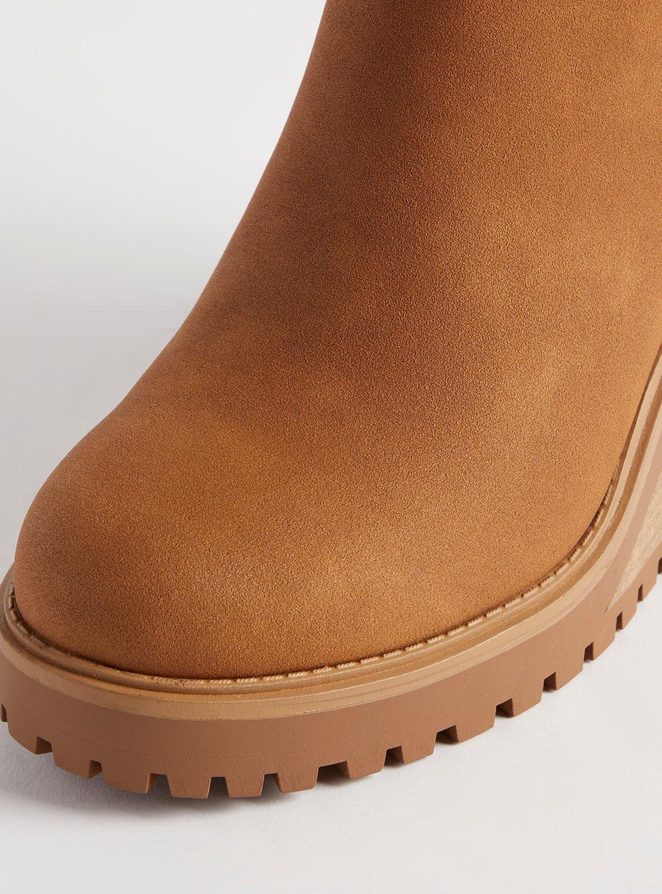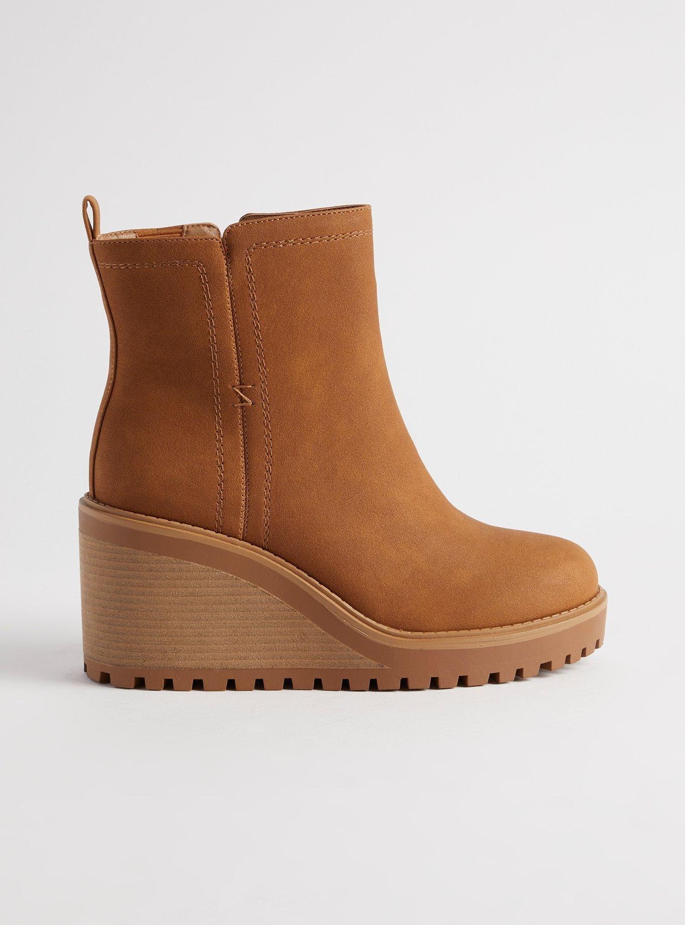 Rated 5 out of 5 by from Love the wedge heel! Love these booties! I know a lot of people mentioned sizing issues, but I live in Canada, and tend to war thick socks in the winter anyway, so I didn't notice. The shoes are a little heavy but for some reason, I didn't mind - it felt like the weight of the shoe offered more stability on slippery snowy days. Full disclosure, I only wore once for a couple of hours before the weather warmed up, but I am looking forward to rocking these next winter. I love the wedge heel for stability as well!