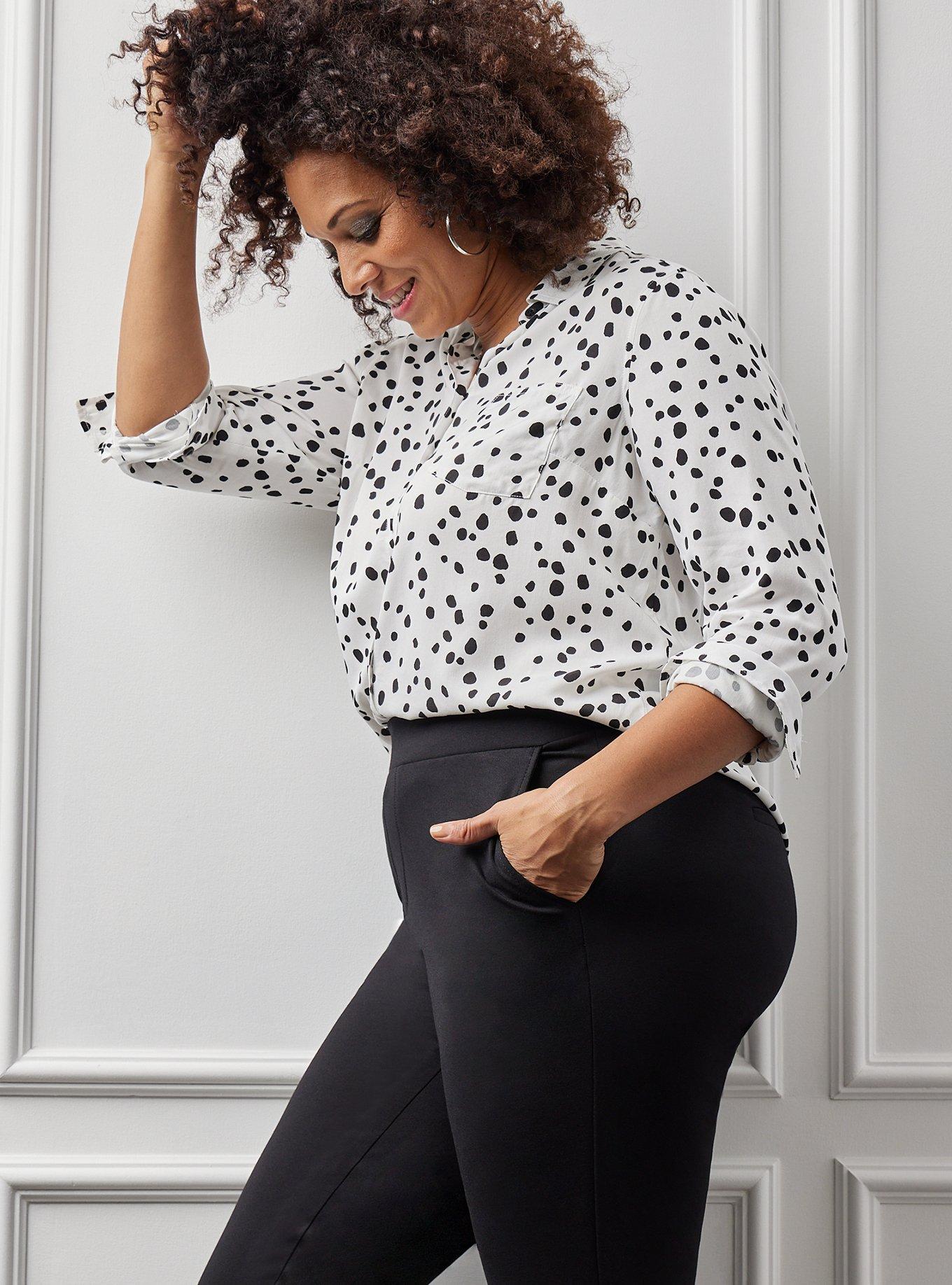love this black high-rise K pant so much. The fit is perfect, and it feels comfortable for all-day wear. It gives a nice shape, looks classy, and pairs well with anything. I’m really happy with this purchase.