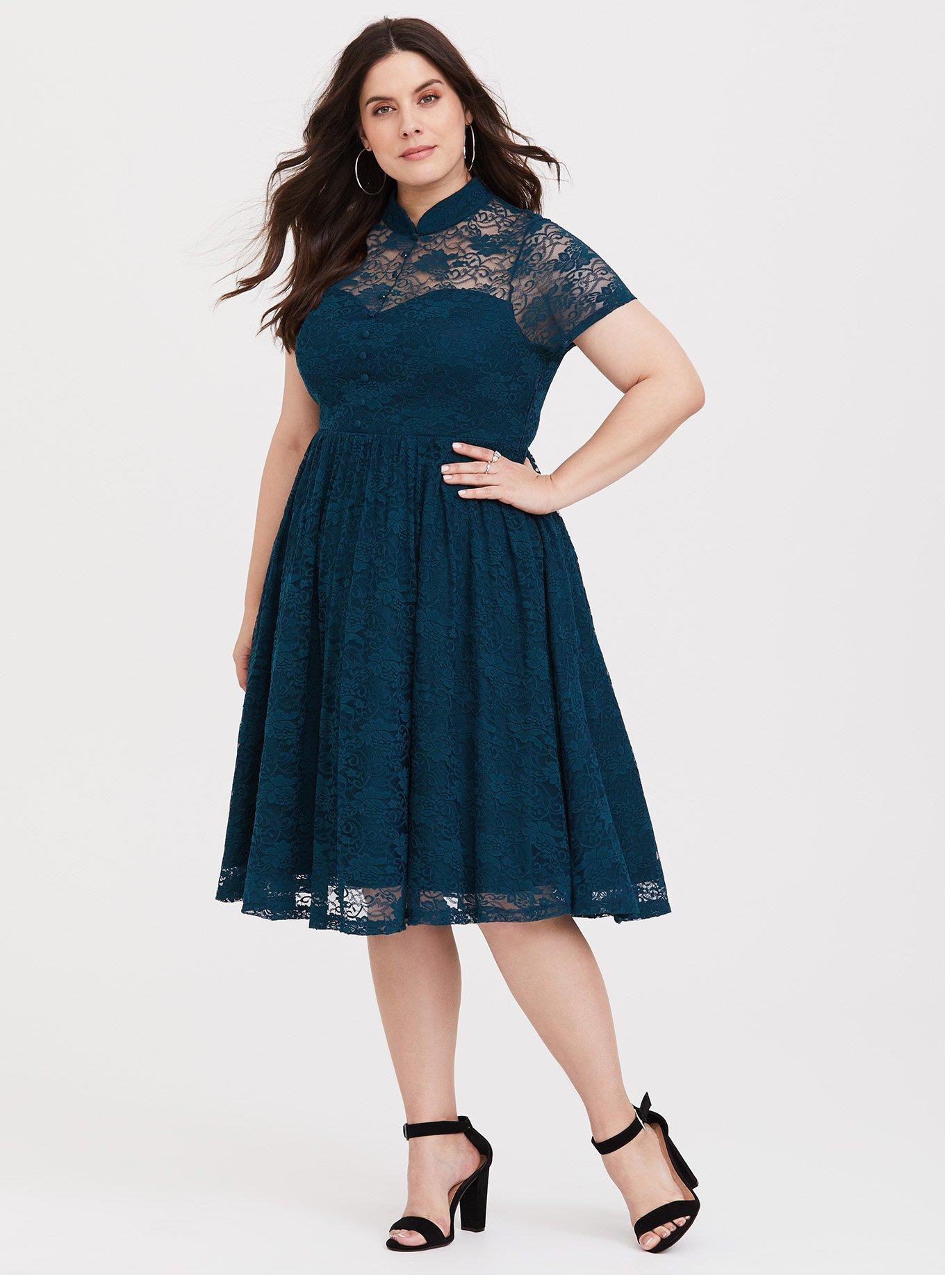 Rated 2 out of 5 by from Disappointing Where do I begin? When I saw this online I KNEW I had to buy it. Beautiful color, loved the lace, and the style was adorable. I waited until it went on sale and ordered it as soon as it did. Well today I receive it in the mail and was so excited. Immediately went to my room and tried it on. First thing I noticed when putting it on was that it was a very heavy dress. I have tons of dresses from Torrid and this dress is by far the heaviest I have ever felt from here. I can only assume it’s because of the 2 full rows of Tule under the dress. ( I’ll get to the tule in a moment) I had a hard time getting the dress to go down over my breast. I wear a 48DD bra and a size 24 dress. I was able to get it to fit but it felt very snug with very little wiggle room. I would recommend buying a size up. Now on to the tule. ( the tutu like material). The tule, in my opinion, was too much. The dress poofed out so much I looked pregnant. It looked terrible. I couldn’t stop laughing at how large it made me look. It does NOT look fluffy at all on the model in the pic. I tried flattening the tule out but it just kept fluffing back up. It’s so disappointing because this dress looks so cute on the model but didn’t look good at all on me. The lace around the arms and neck was soft and not scratchy BUT I wasn’t able to lift my arms above my head without feeling like it would tear or rip. I don’t know if a size up would have fixed that. End result I looked twice my size and I couldn’t lift my arms. I have over a dozen dresses and other outfits from Torrid and all are a 24. So if you want to try this dress for yourself I do recommend ordering 1 size larger (especially if you have larger breast).