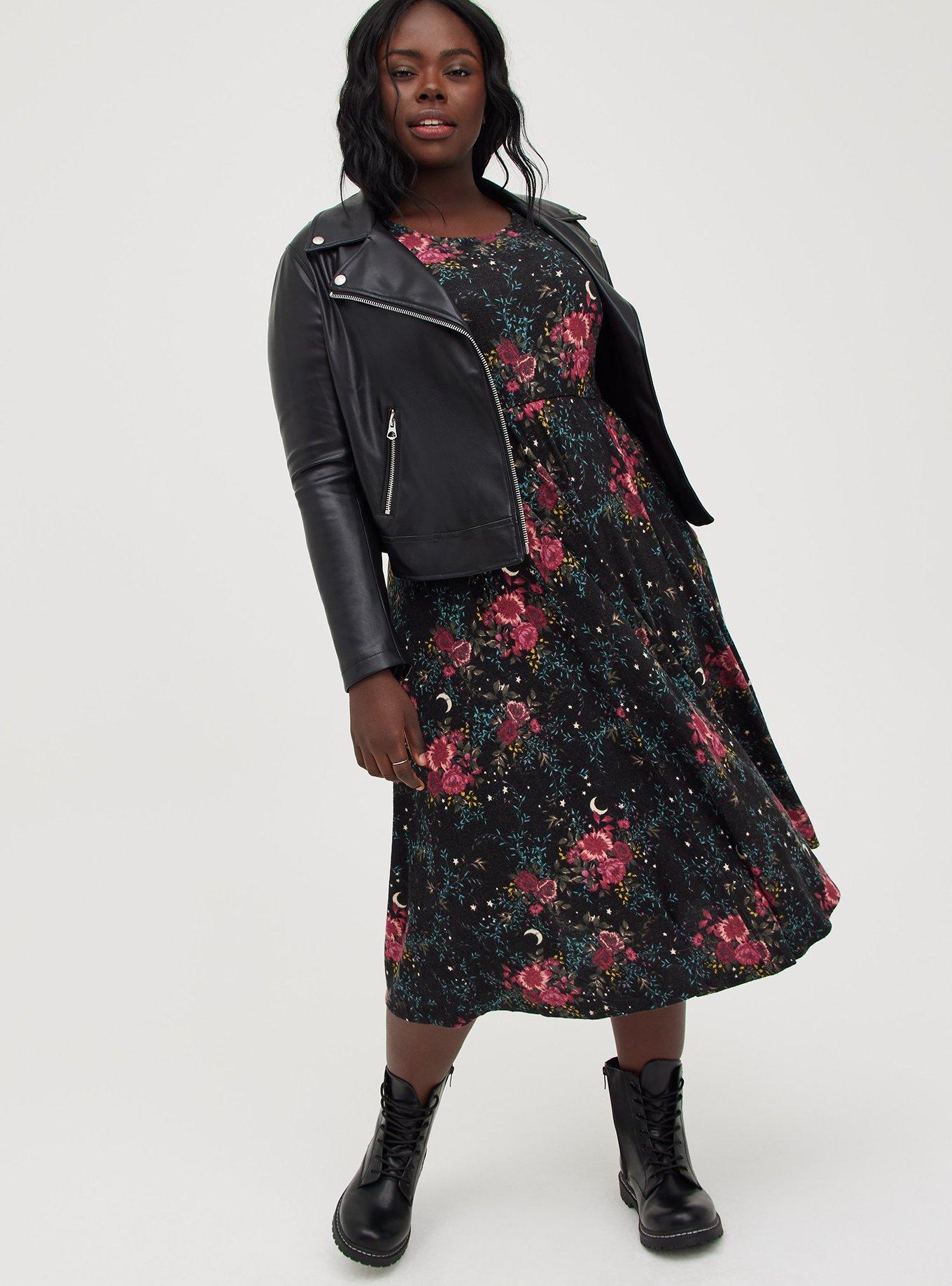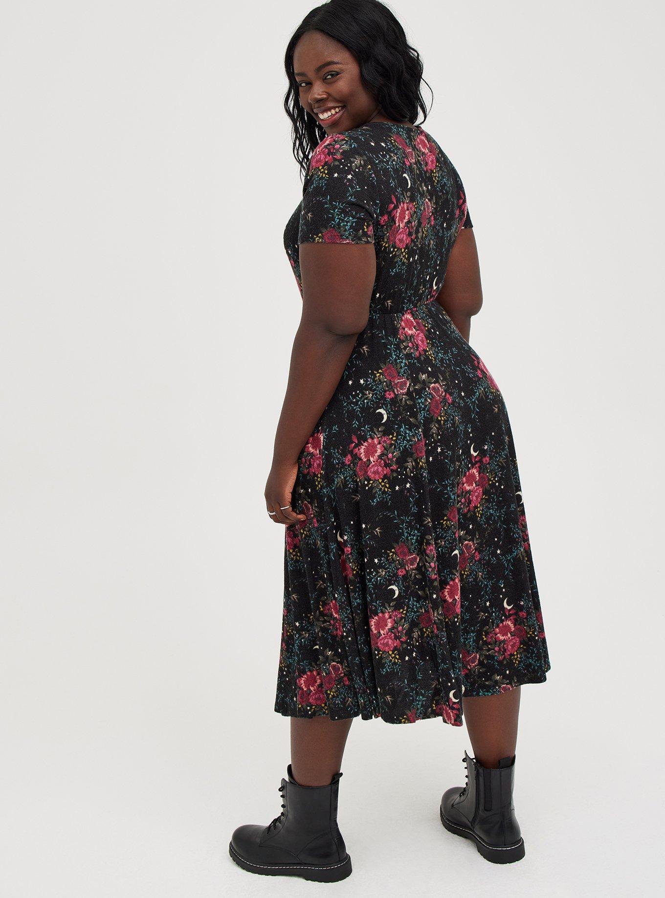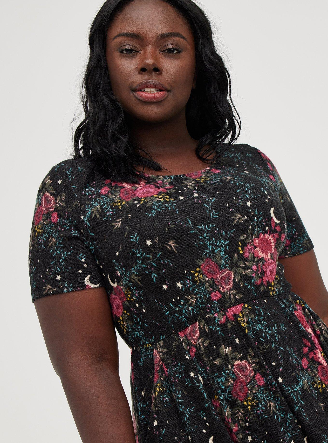 Skater Midi Dress, FLORAL BLACK, hi-res