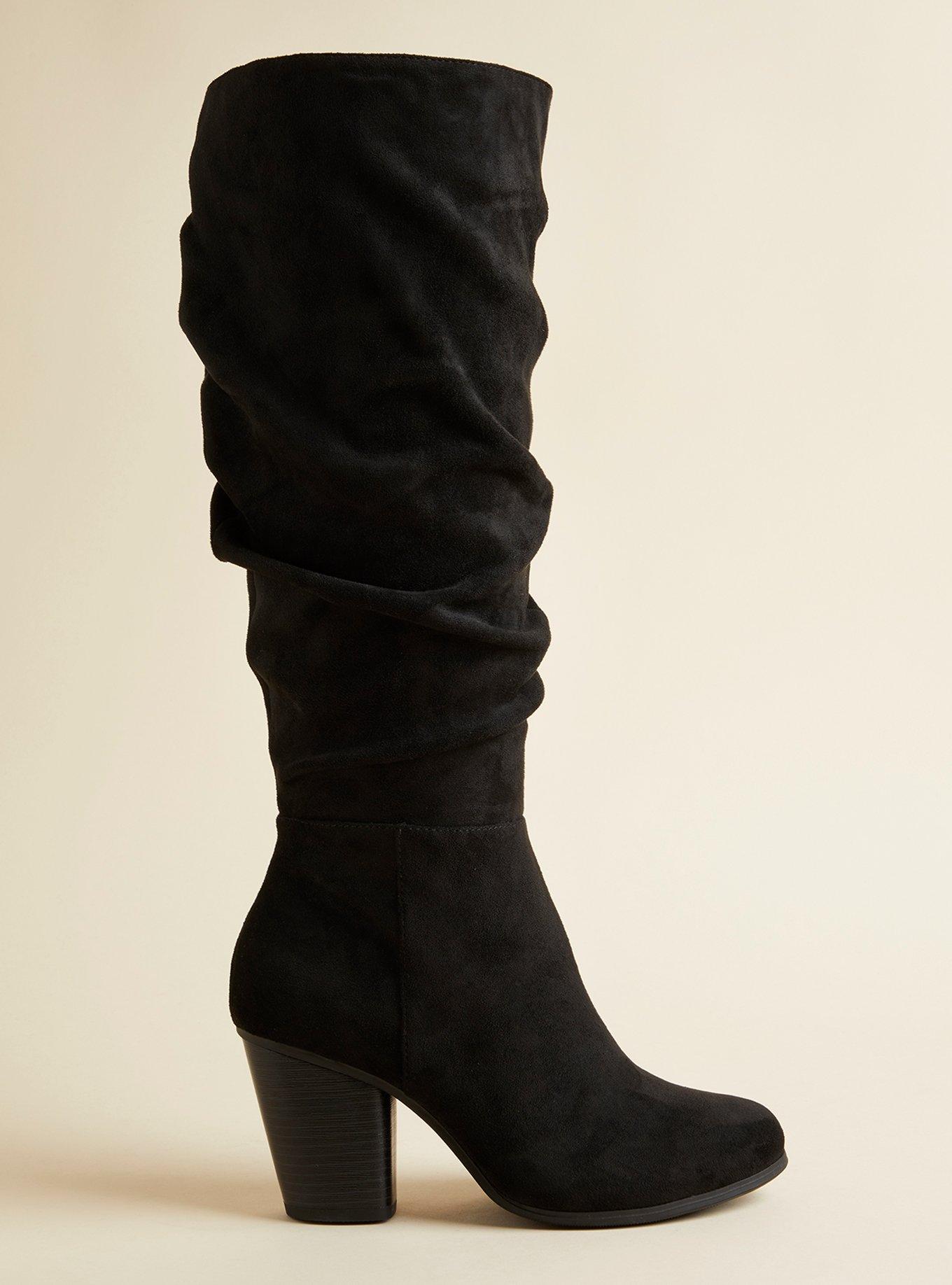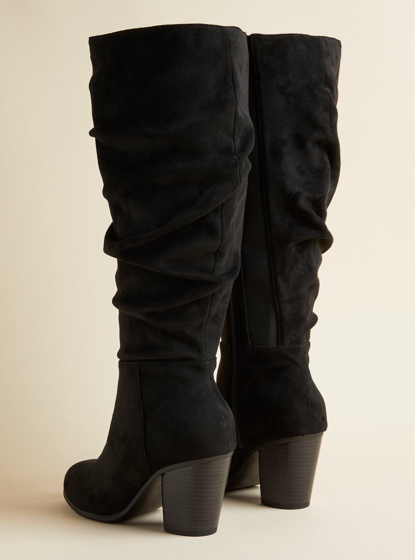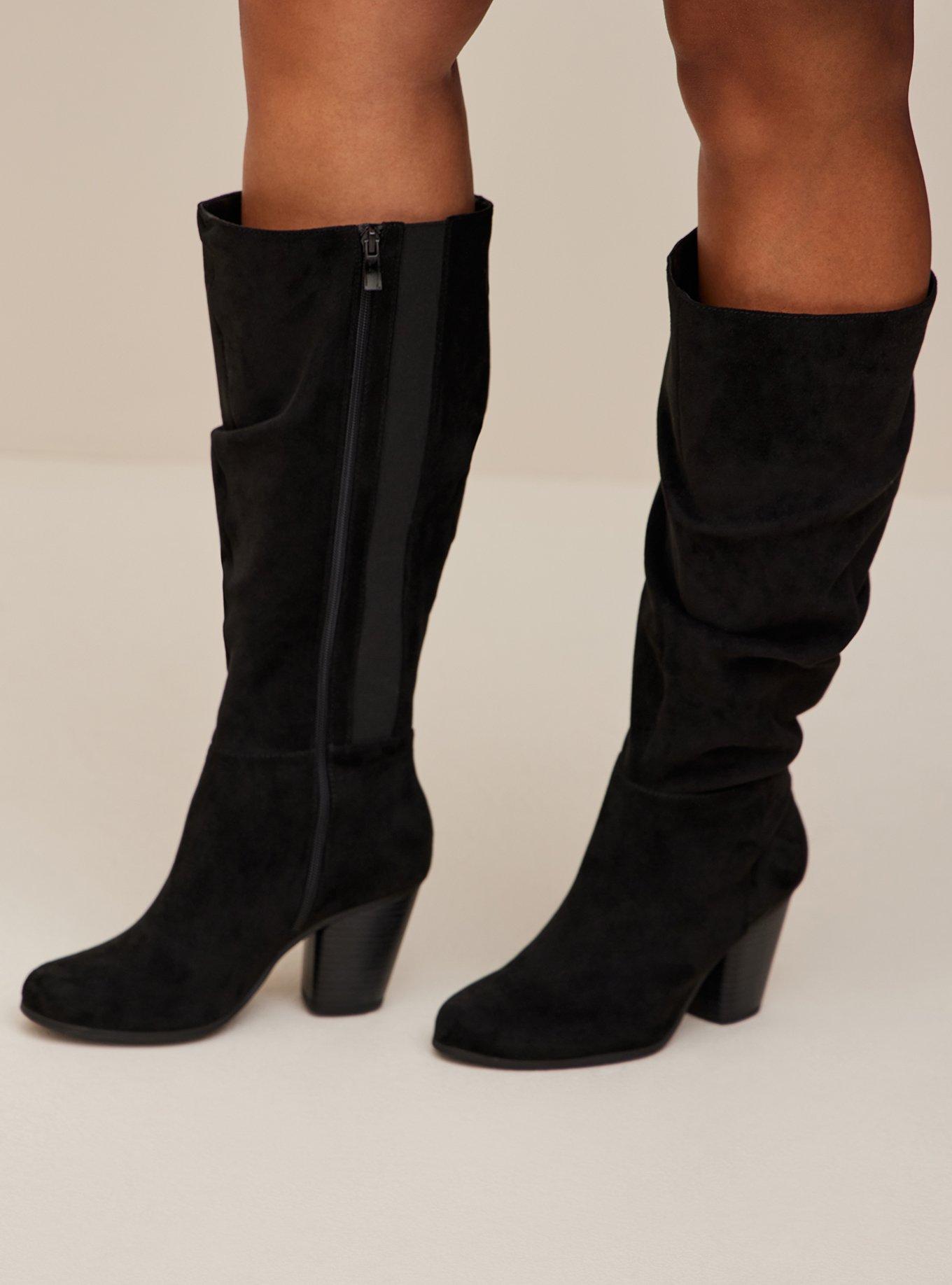 Rated 5 out of 5 by from Must-Have Boots I purchased these boots online along with another pair. While both pair were beautiful, I settled on this pair. With its faux suede upper and faux wooden hill, I opted for this pair over the others. These boots are beautiful and super comfy and stylish. My original size was sold out, so I opted for a 11.5 in the extended calf. It is difficult to find nice boots with a beautiful silhouette, but Torrid nailed it with these. At $89, I snagged them on sale by using Torrid Cash but they appear way more expensive. Wore these all day and after 7-8 hours, they became a tad uncomfortable due to larger size. Nothing a sock in each boot won't fix. So glad I added these gorgeous boots to my wardrobe.