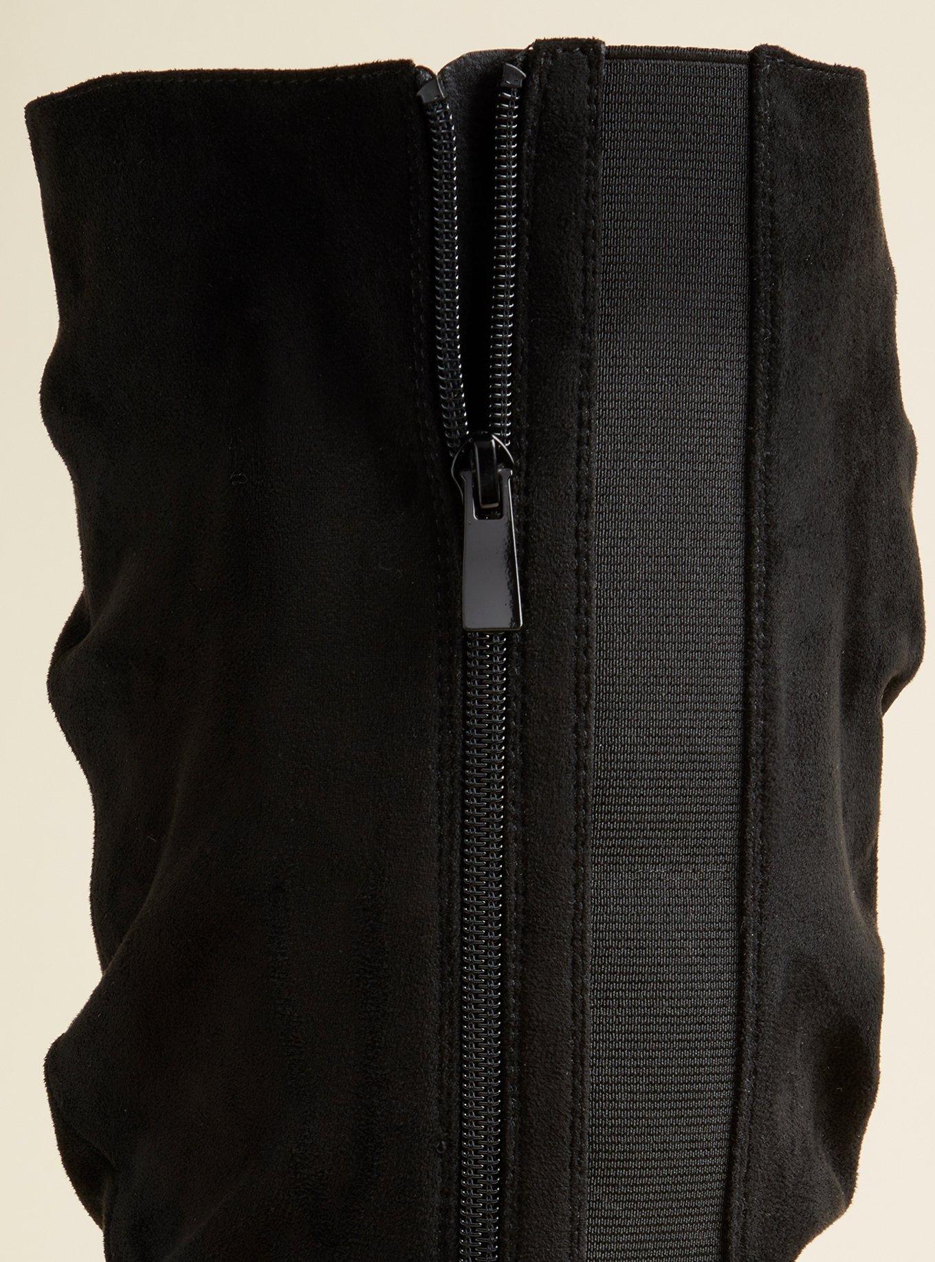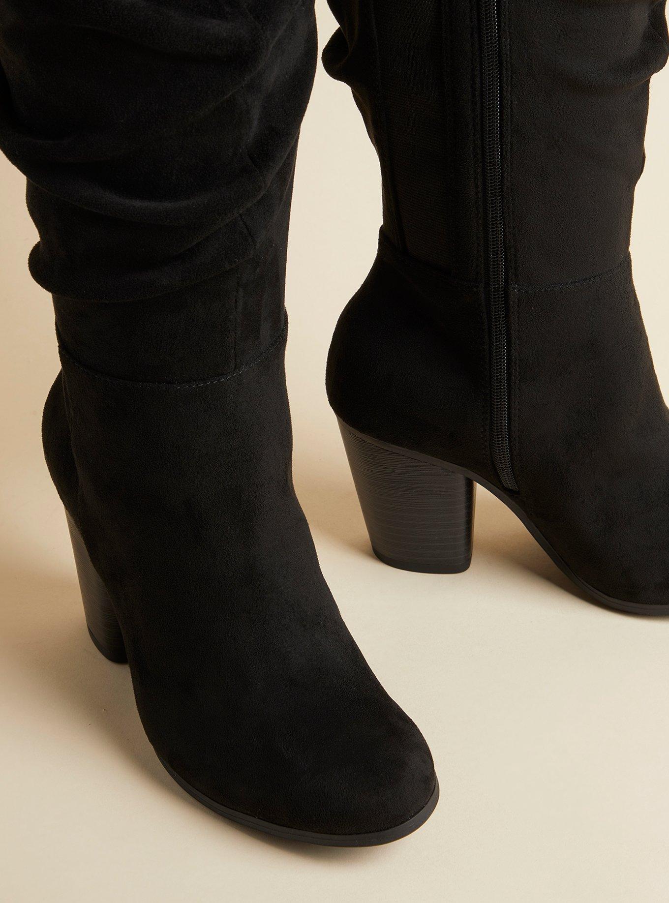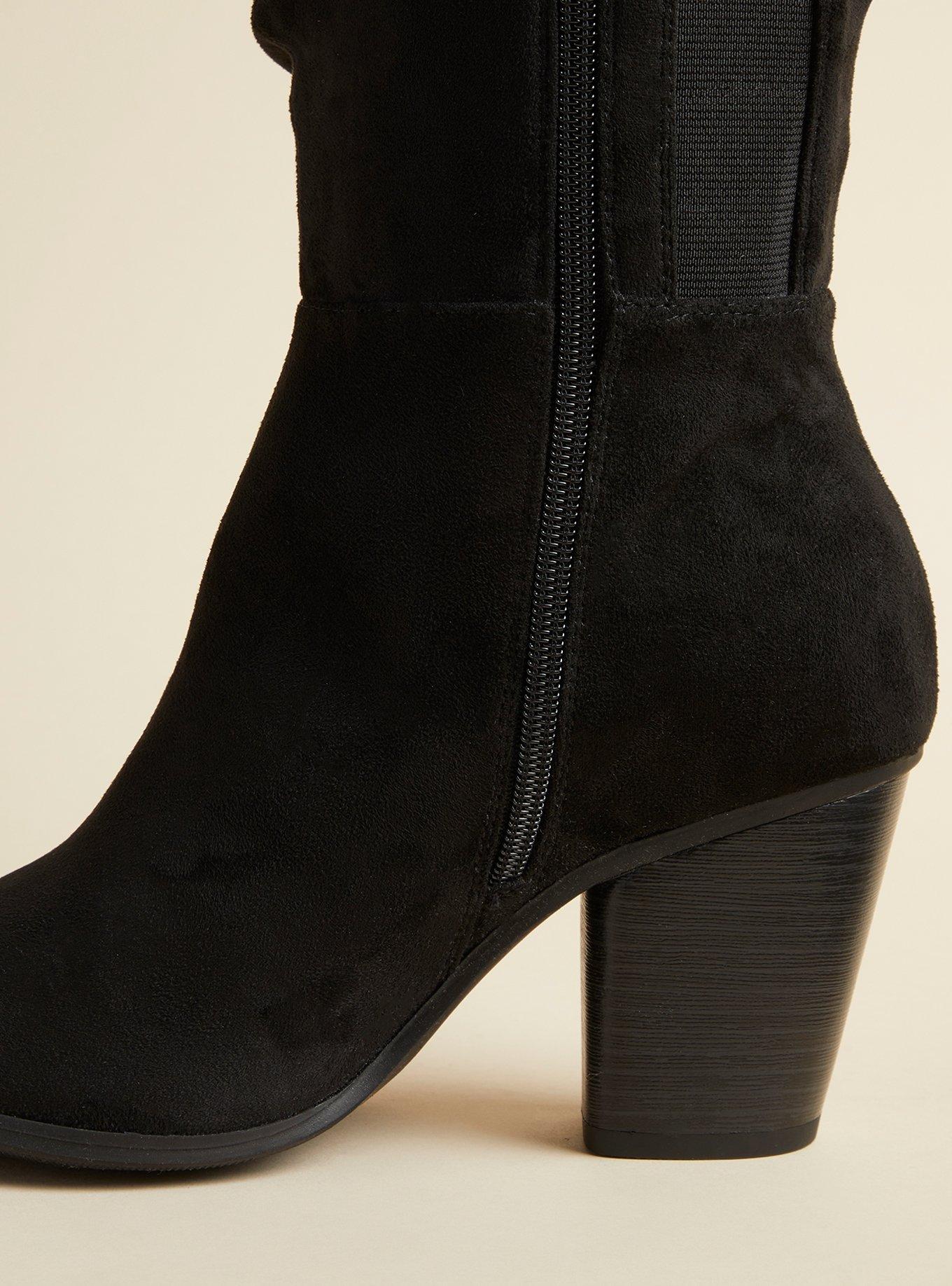 Rated 5 out of 5 by from Must-Have Boots I purchased these boots online along with another pair. While both pair were beautiful, I settled on this pair. With its faux suede upper and faux wooden hill, I opted for this pair over the others. These boots are beautiful and super comfy and stylish. My original size was sold out, so I opted for a 11.5 in the extended calf. It is difficult to find nice boots with a beautiful silhouette, but Torrid nailed it with these. At $89, I snagged them on sale by using Torrid Cash but they appear way more expensive. Wore these all day and after 7-8 hours, they became a tad uncomfortable due to larger size. Nothing a sock in each boot won't fix. So glad I added these gorgeous boots to my wardrobe.