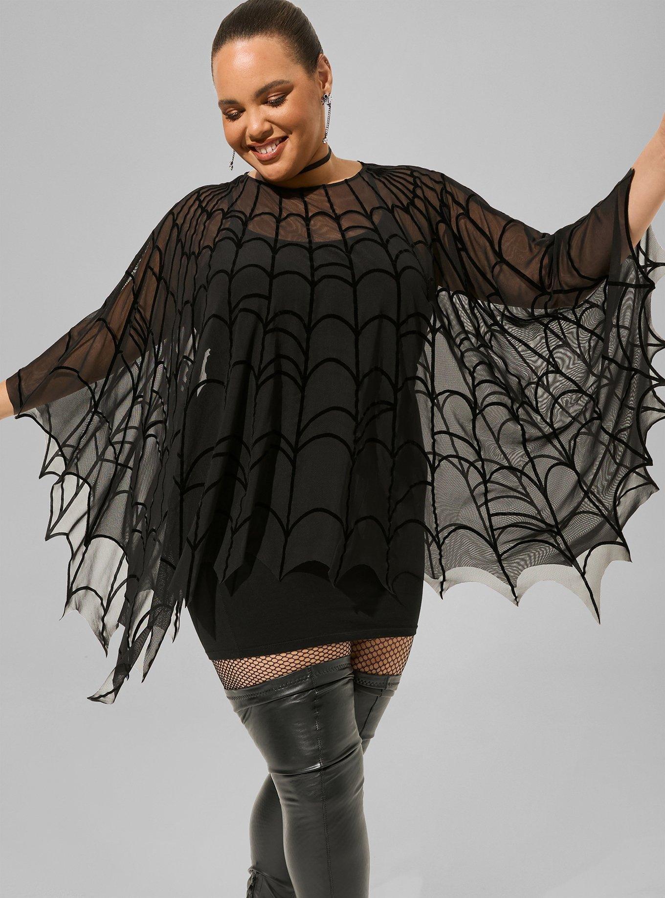 Rated 5 out of 5 by from Love the web! Very nice poncho. Sheer mesh with thick velvety lines to create the web. The neckline is a little narrow - if you’re using this as a costume, you’re going to have to take great care not to mess up your hair when putting it on.