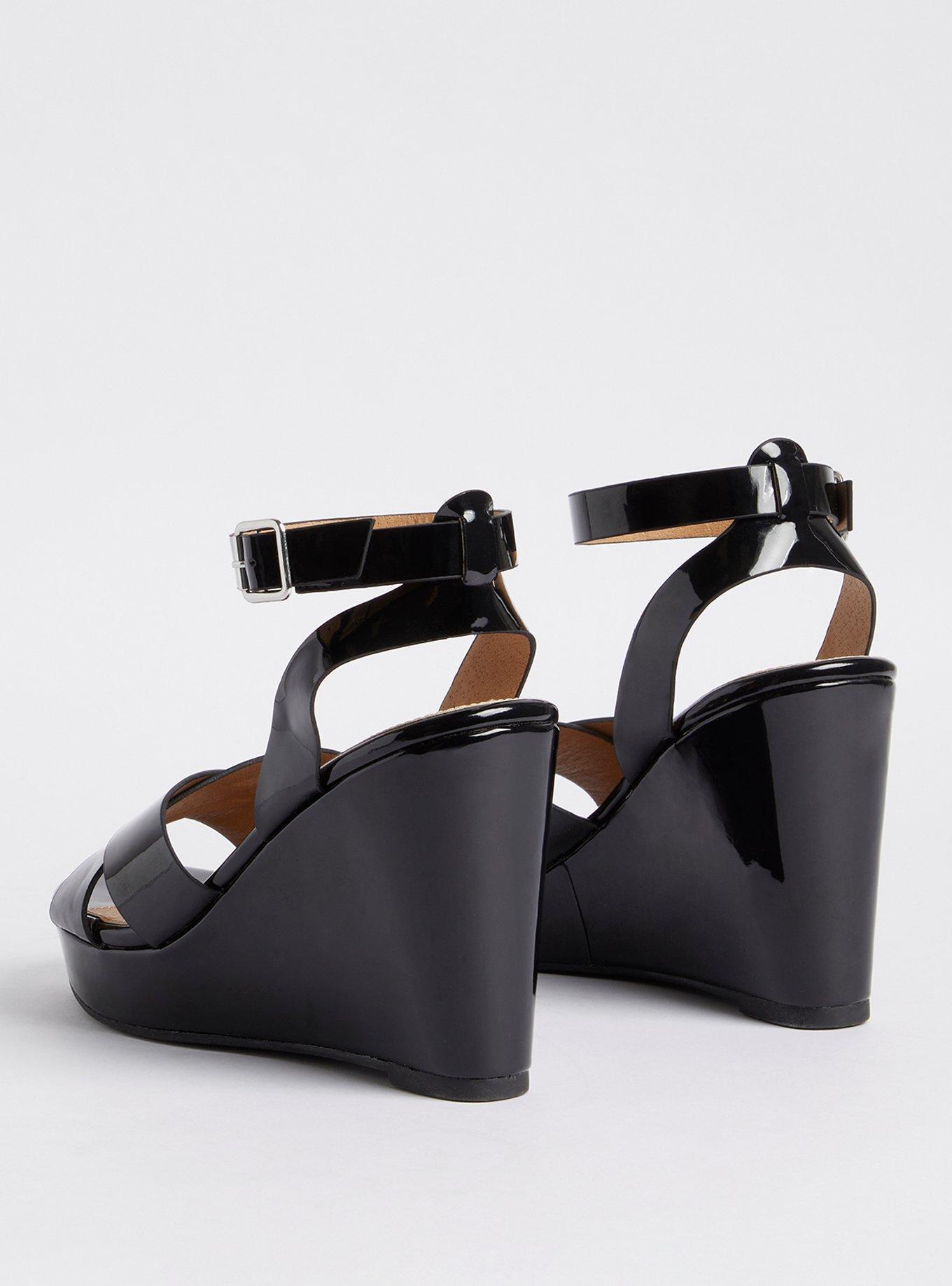 Strappy Platform Wedge Sandal - Patent Black (WW)