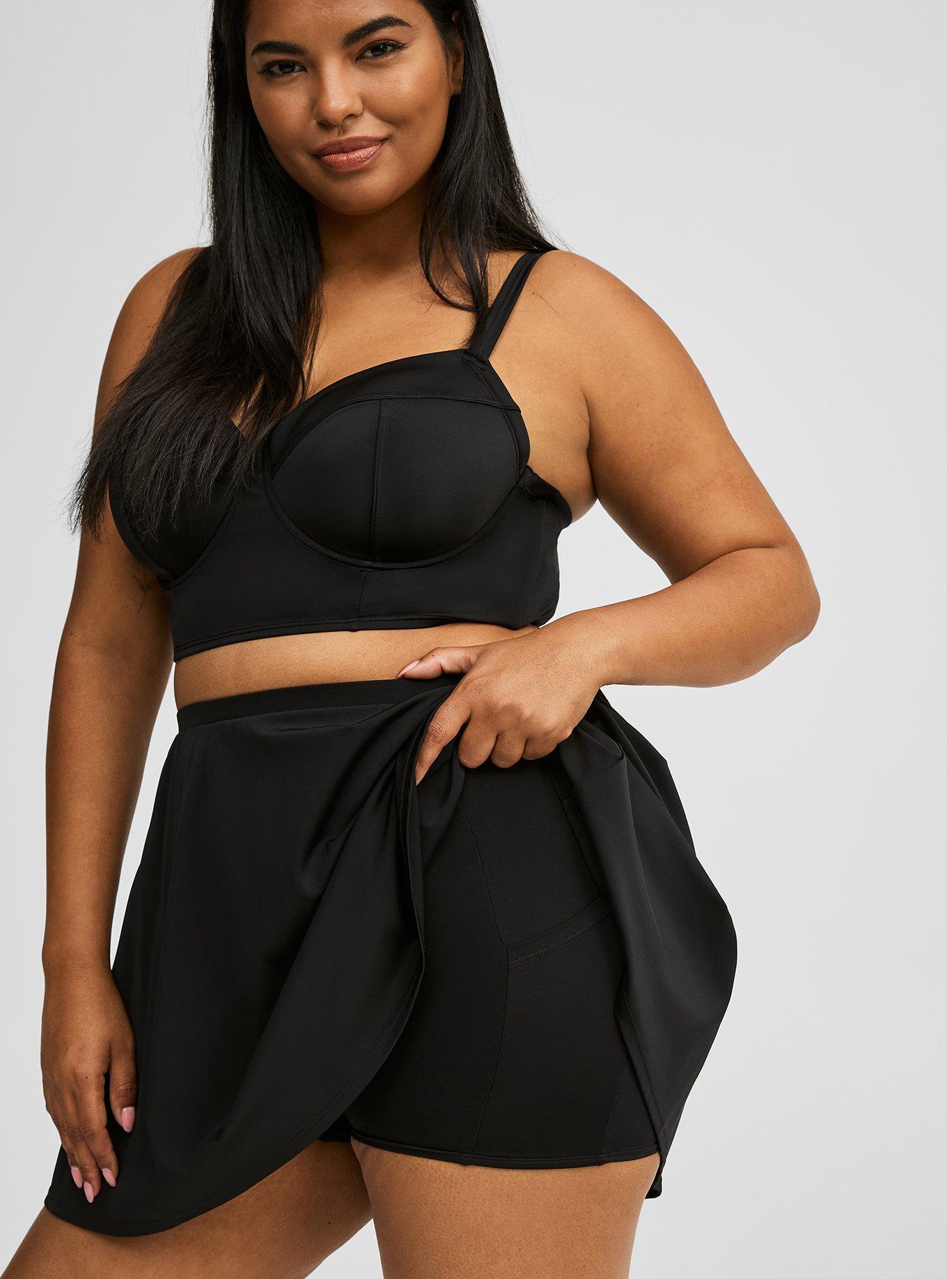 Rated 5 out of 5 by from Size Up & Swim! I took a chance when I placed the order for swim bottoms. I struck out last year with having to return 2 swimsuits from Torrid that either tugged the tummy or had gaping holes in the chest-zone for my baby (C/B) boobs.(Why, oh why, are there not options with high necks or something that doesn't have cutouts all over the boob-zone for us small-chested girls who can put both boobs in the space for one cup?? There were such great Retro-style one-pieces in 2021-- that blue and white gingham halter one, I'm looking at you, and was hoping for a similar piece) I tried on bottoms from a dept. store when I was visiting family over Memorial Day weekend, and wasn't too thrilled with how I looked for what they were asking so decided to look at Torrid again. Overall, the designs of the Torrid swimsuits this year weren't as appealing as last year's, or even from back in 2021 (or at least to me), but I decided to give these bottoms a try with going one size up, since my problem zone is with the lower part. These bottoms are longer than I expected- this is good, they're made well, and they FIT and don't squeeze your life away (though they might if I ordered my 'regular' size). The pocket's a definite plus! With a like-new top passed on from family and these bottoms, I'm ready to see how they do in the water! I'm hoping I'll love them as much as my blue & white gingham from Torrid.