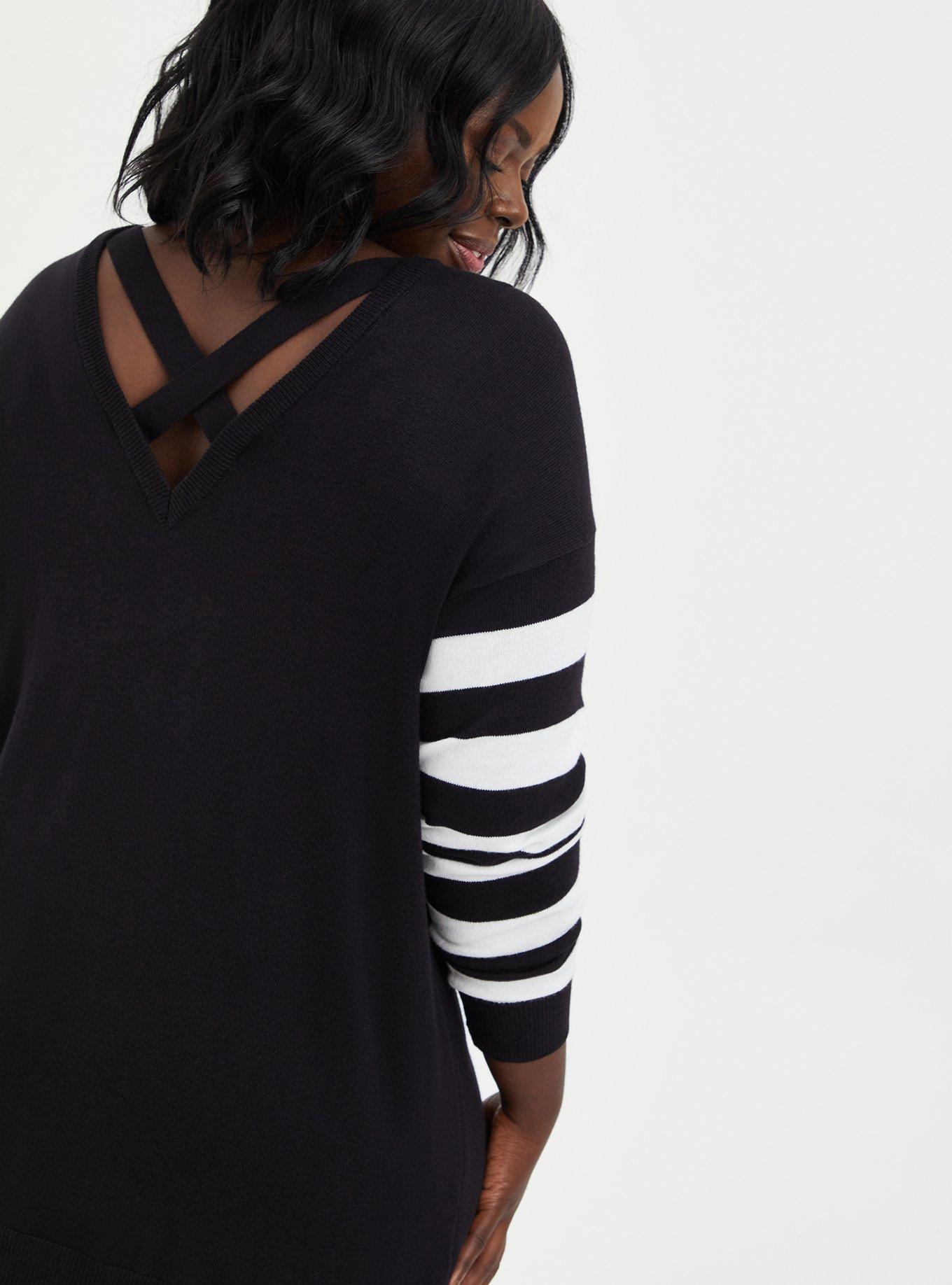 This is my favorite sweater from Torrid. It's so comfortable and cute. The back detail is unique and pretty. I love wearing them with leggings or jeans