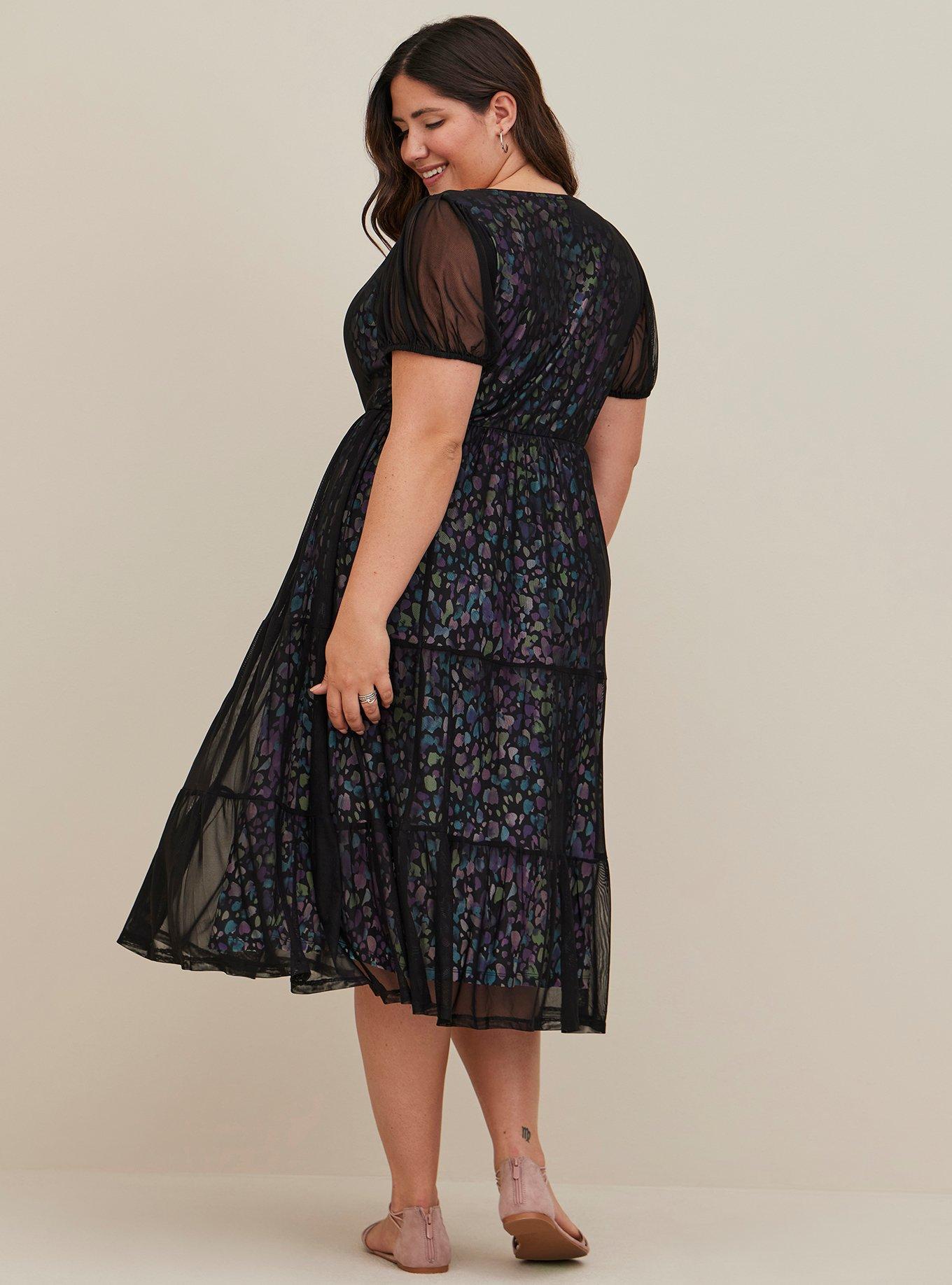 Tiered Midi Dress - Soft Mesh Spotted Black